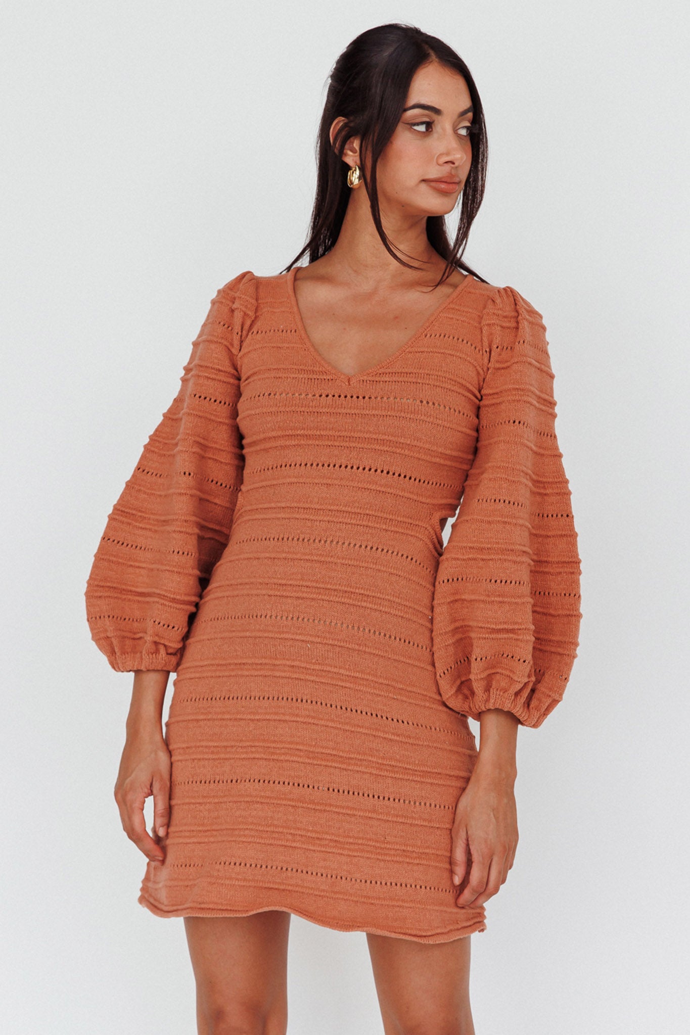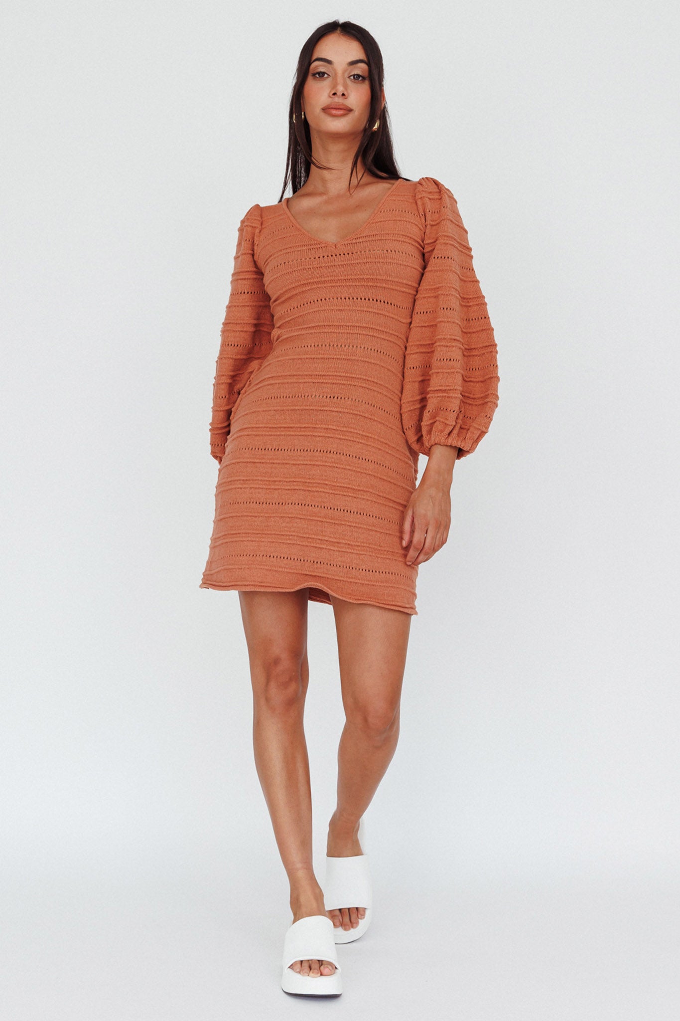 Meredith Long Sleeve Cut-Out Mini Dress Cinnamon