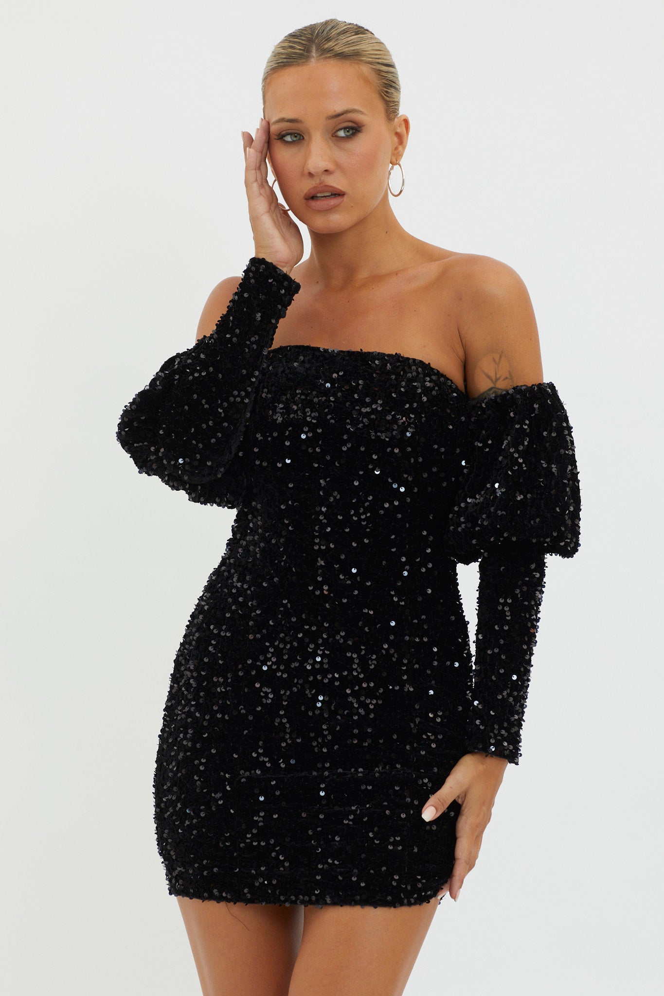 Make an entrance in our stunning Merry & Bright mini dress. Featuring a gorgeous sequin-embellished velvet fabric and off-shoulder style, it's perfect for a glam holiday party or special occasion. Team it with strappy, tie-up heels and a clutch for a jaw-dropping look.