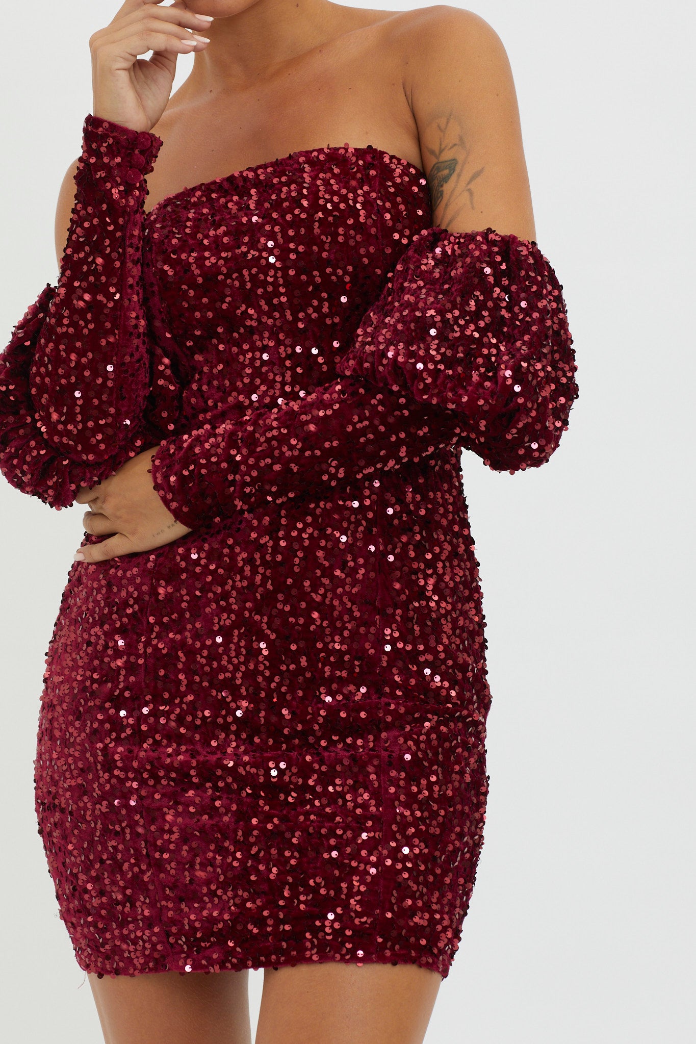Make an entrance in our stunning Merry & Bright mini dress. Featuring a gorgeous sequin-embellished velvet fabric and off-shoulder style, it's perfect for a glam holiday party or special occasion. Team it with strappy, tie-up heels and a clutch for a jaw-dropping look.