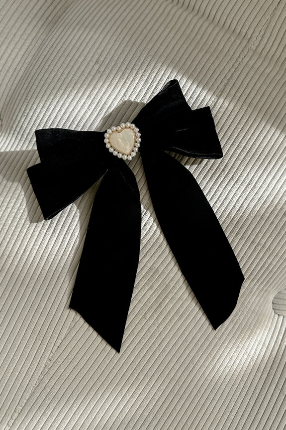 We've fallen head over heels for our gorgeous Michala bow hairpin. Featuring an adorable velvet bow with a pearl heart decoration, it's the perfect accessory to make you feel like a true princess on a special occasion!