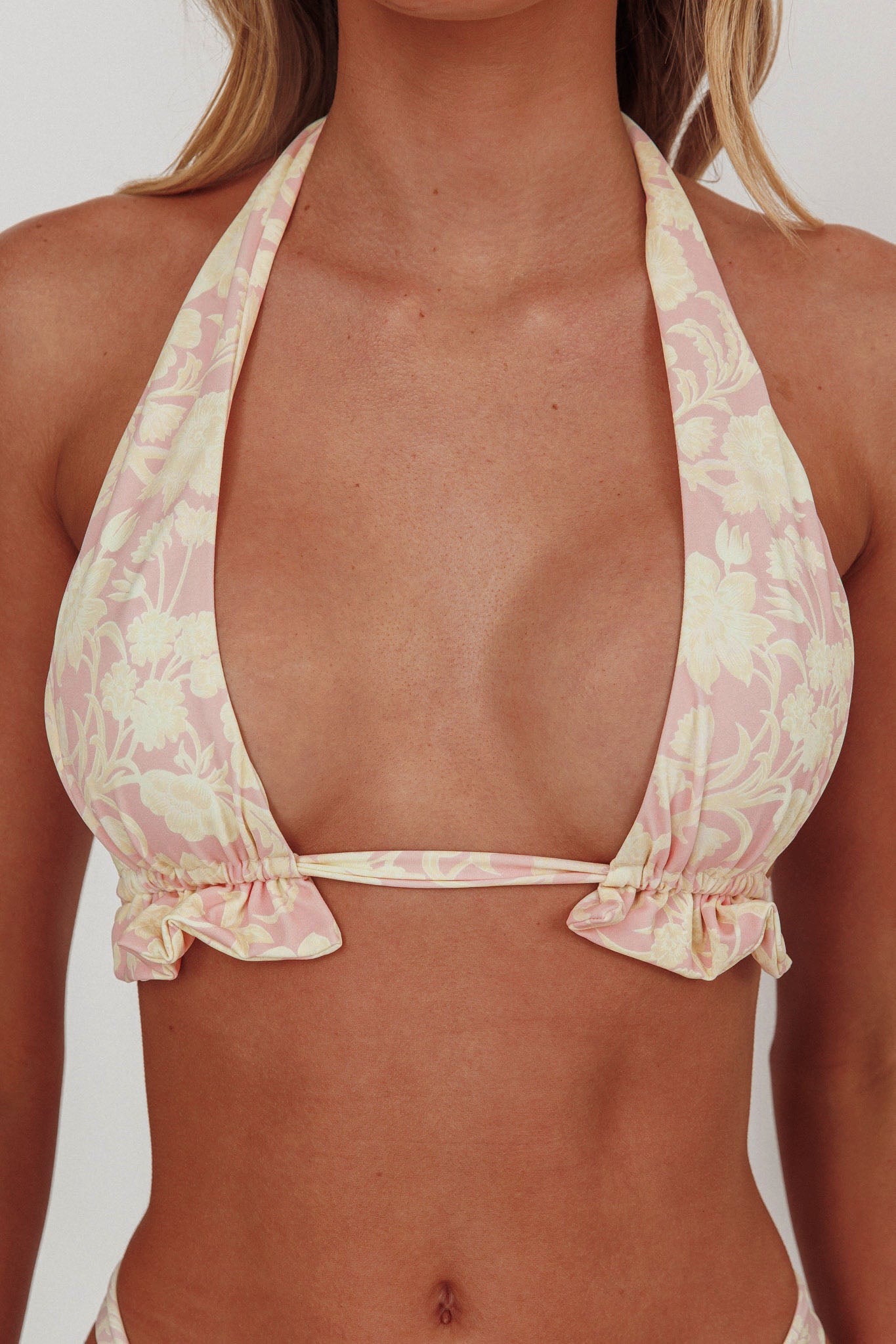 Soak up the Summer sun with our Milagro bikini top! It features a halter design and super cute polka dot print. Pair it with its matching bikini bottoms, a sarong and slides for a hot Summertime look.