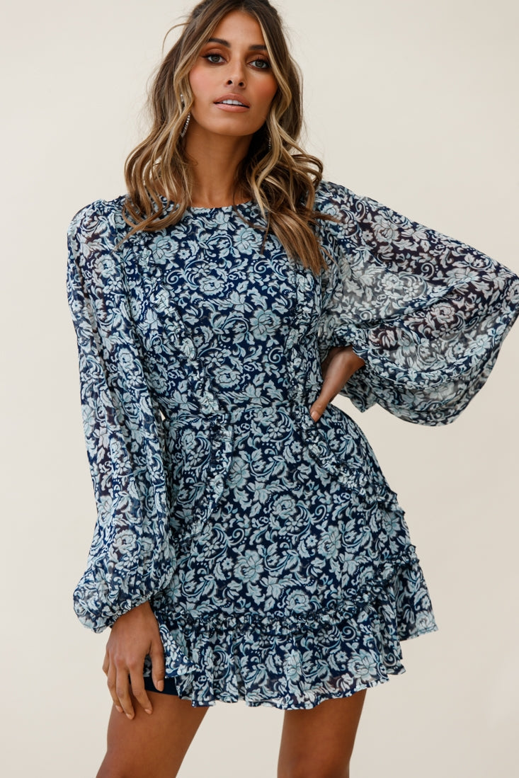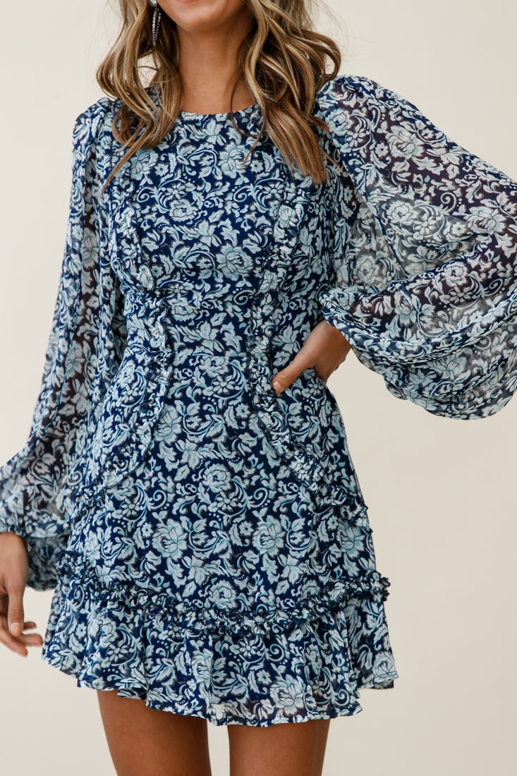 Turn heads in our gorgeous Mirabelle dress. Partially lined, it features sheer balloon sleeves, a crew neckline, ruffle hemline and frill trim details. Perfect for dinner with the girls teamed with pointed-toe pumps and a tote.