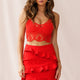 They'll think you're a Mirage when you walk in wearing this super hot crop top. Unpadded, it features shirring in the back, adjustable cami straps, pretty crochet lace fabric and lined bust. Dress it up with our 'Frilled to Meet You' skirt for a night out on the town or pair it with cut-off denim shorts and sneakers for a fun, casual look.