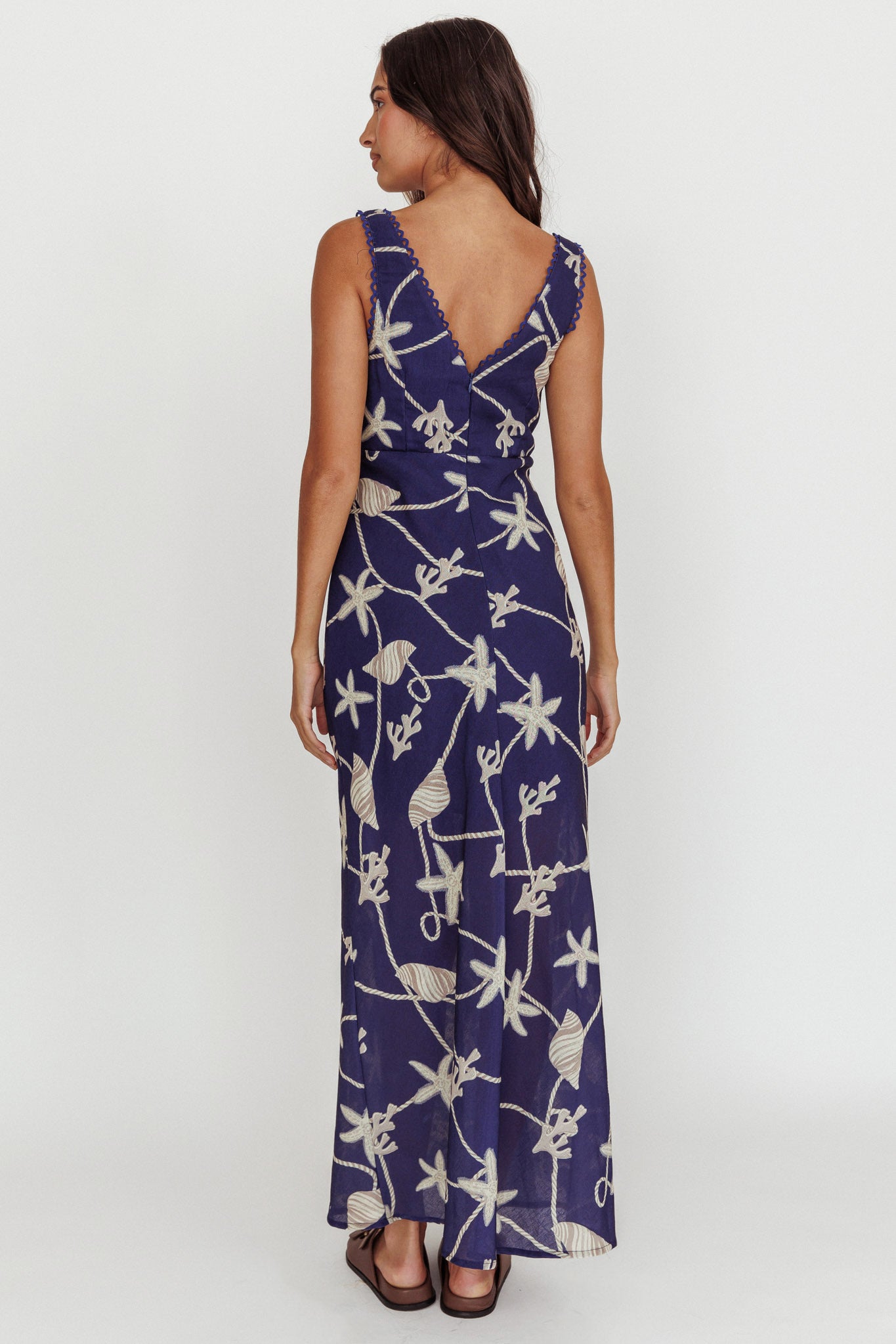 Twirl through your day in our pretty Miss Divine maxi dress. We are in love with darling ocean inspired print and deep neckline. It's perfect for weekend coffee dates with your besties teamed with mules and a baguette bag for a look we are loving.