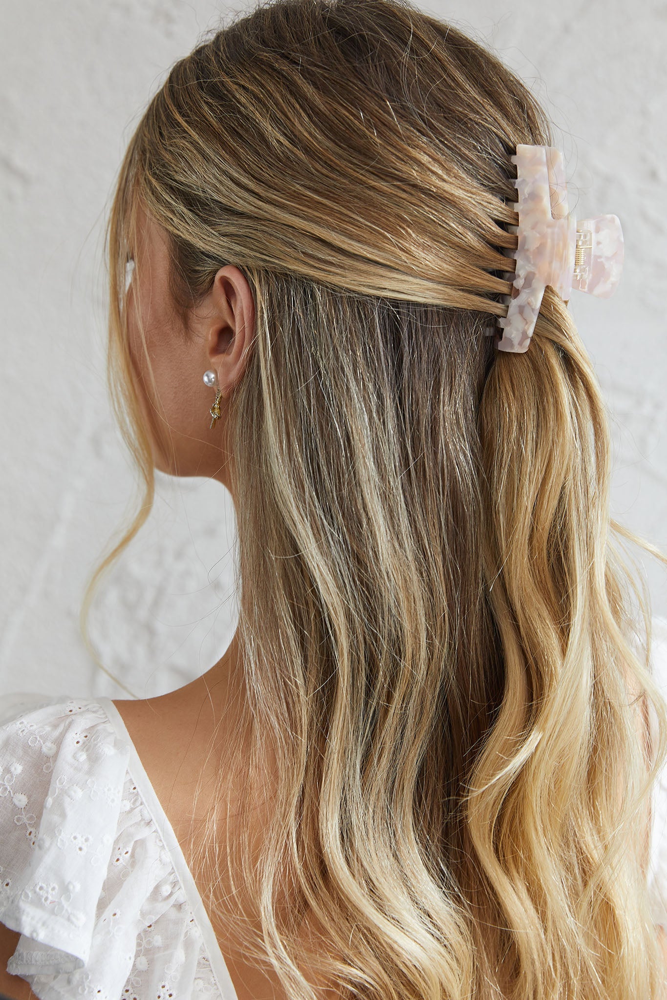 Take your look to the next level with our chic Missy hair clip. Featuring a pretty, marbled look and claw design, it's perfect for a casual day out with your girls or a date night night. Team it with our Flower Child romper for extra style points.