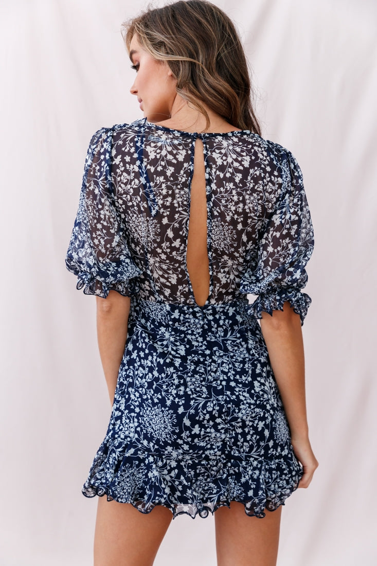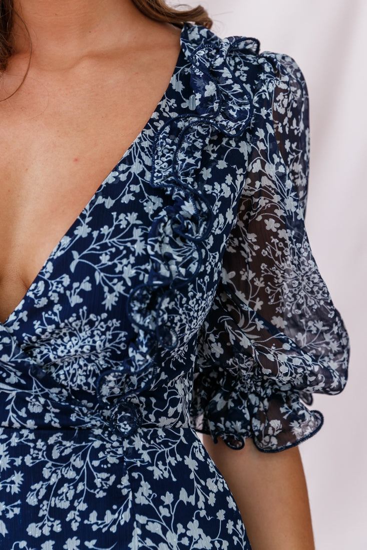 Misty Half Puff Sleeve Ruffle Detail Dress Navy