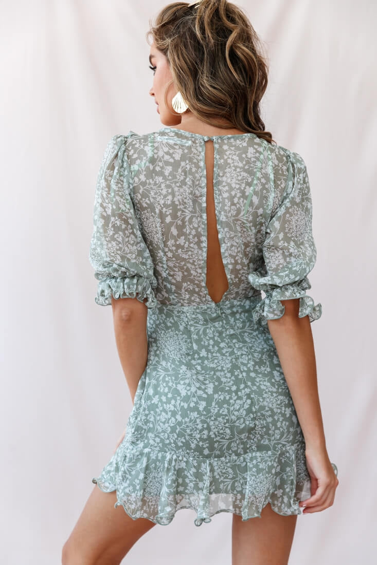 Misty Half Puff Sleeve Ruffle Detail Dress Olive