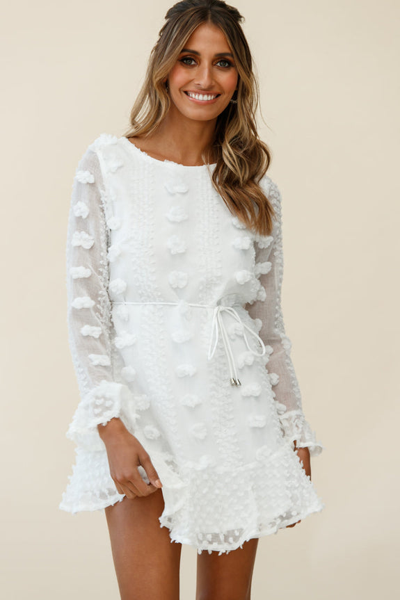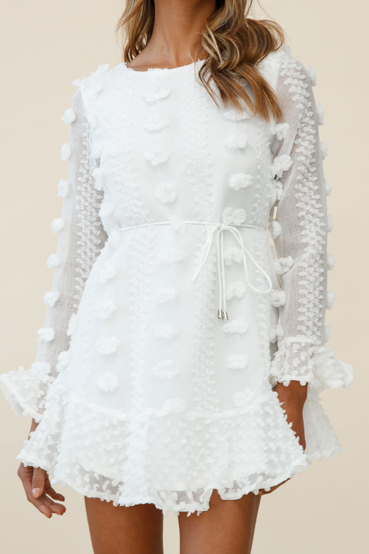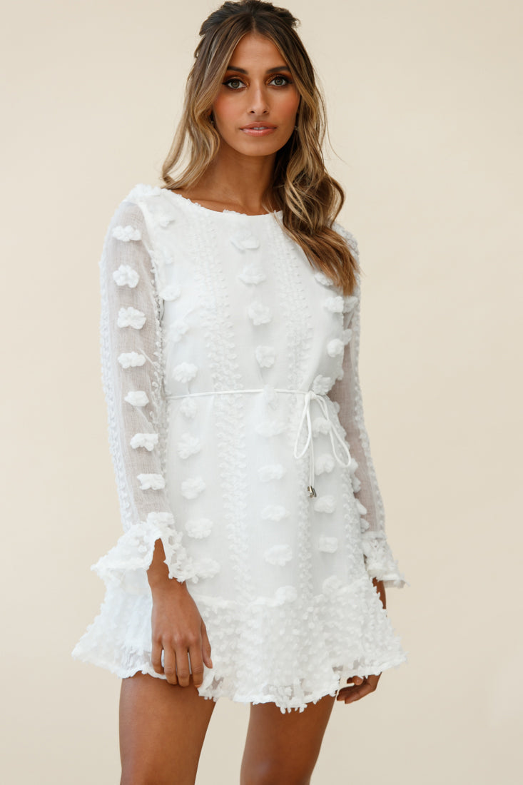 We've fallen in love with our classy Montville dress. Partially lined, it features the prettiest embellished fabric, long sleeves with flared cuffs, fluted hem and a separate string tie around the waist. Perfect for when you need to look modest yet oh-so-chic. Team it with pearl earrings and nude pumps for an elegant look fit for a princess.