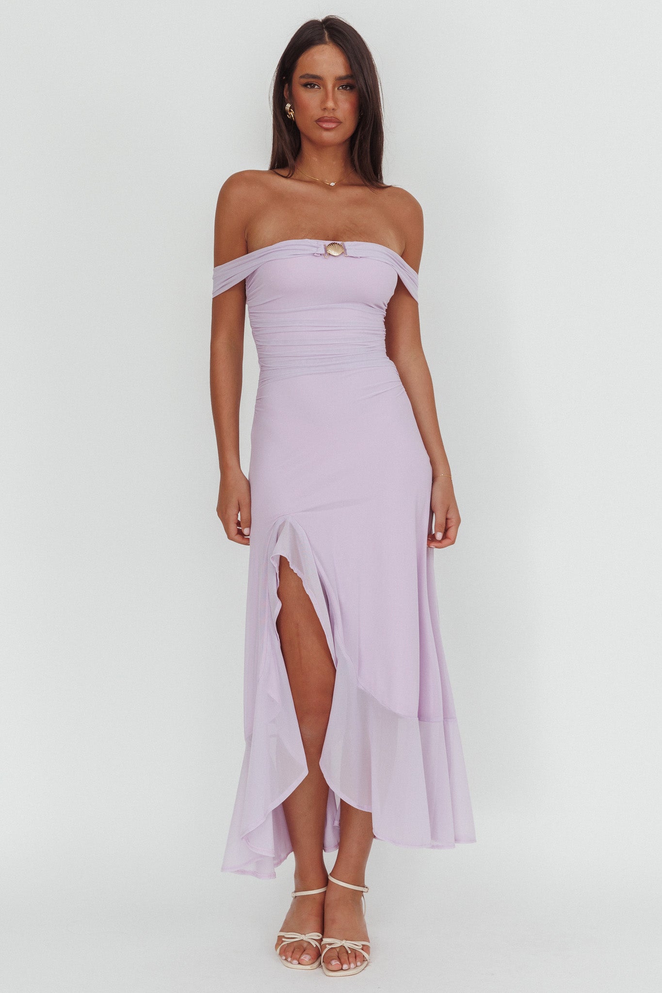Moonlit Magic Off-Shoulder Split Maxi Dress Lilac