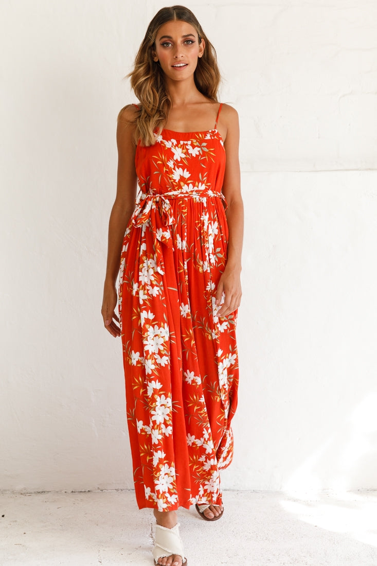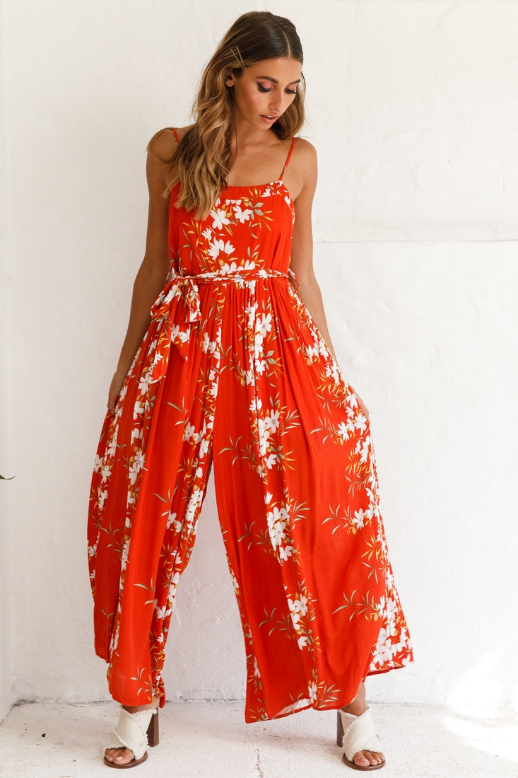 Our breezy Morgan jumpsuit is perfect for strolling the farmers' markets or a day by the beach. Featuring adjustable straps, a square neckline, floaty, wide-leg pants and a separate waist tie. Pair it with espadrille wedges and a straw tote for a look we are loving.