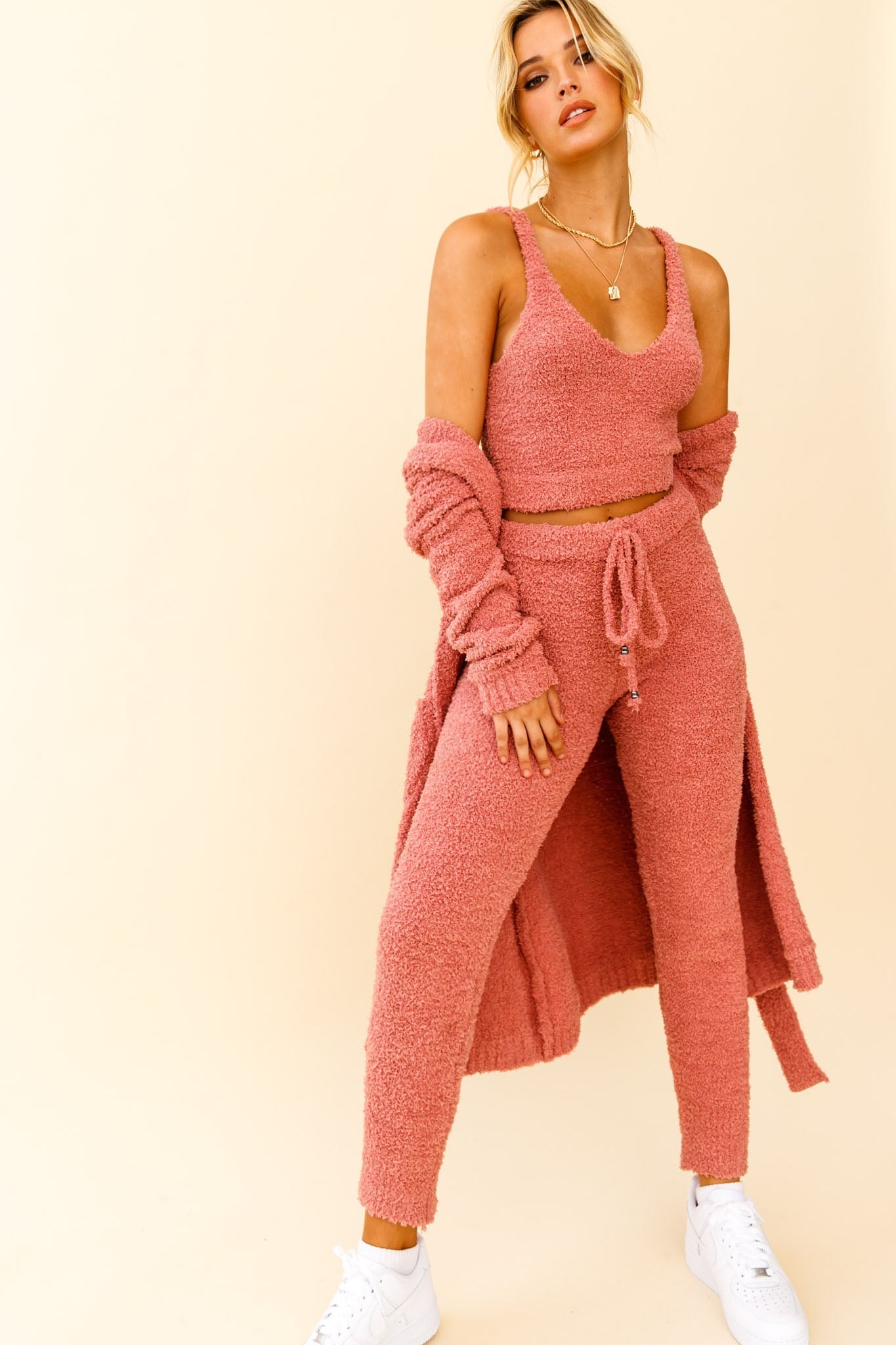 My Girl Fuzzy Knit Jogger Pants Rose