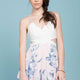 The spaghetti straps give way to a V-shaped neckline supported and sweet side cut-outs. Pair with tear drop shaped earrings and black strappy flats.