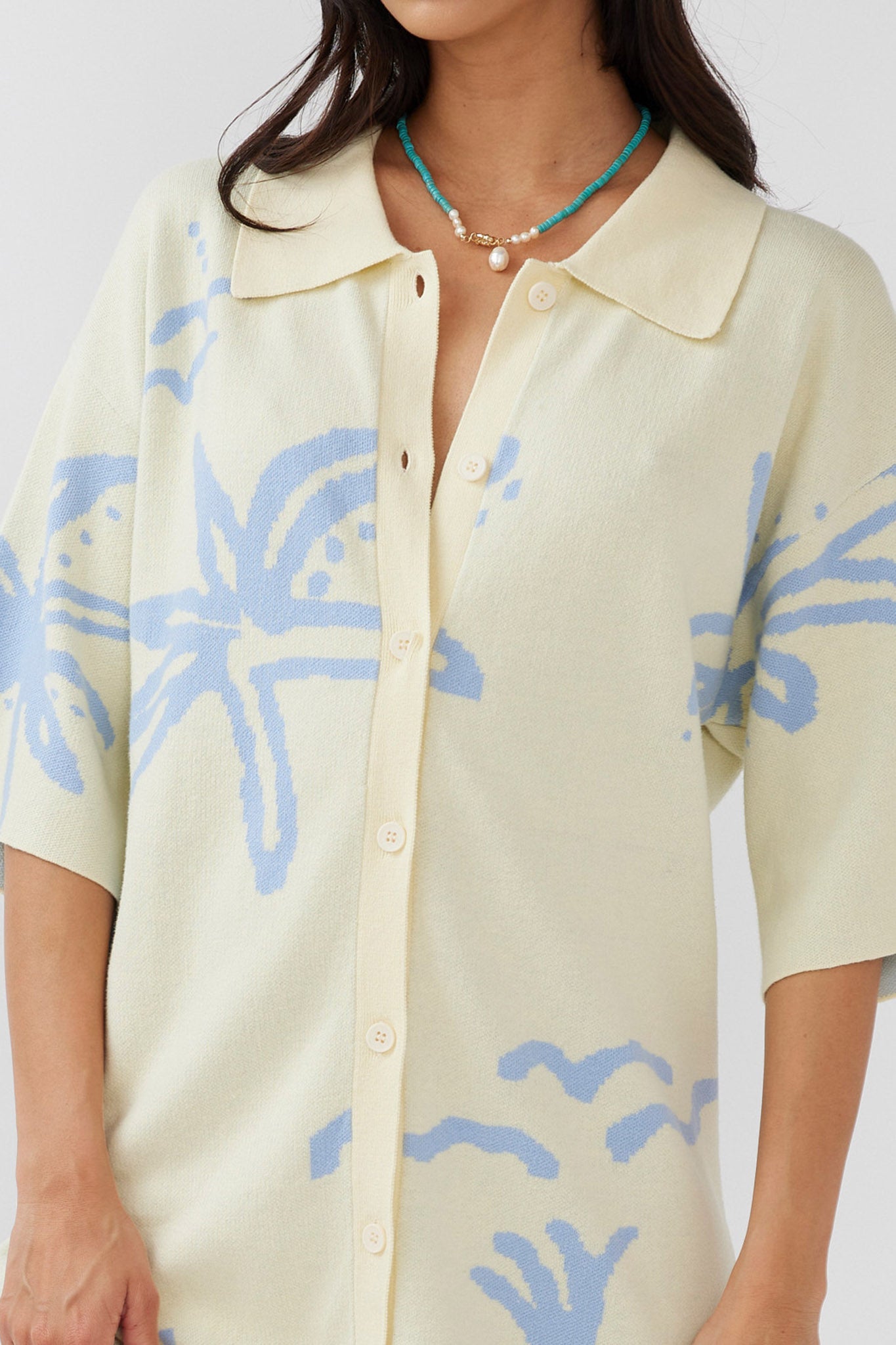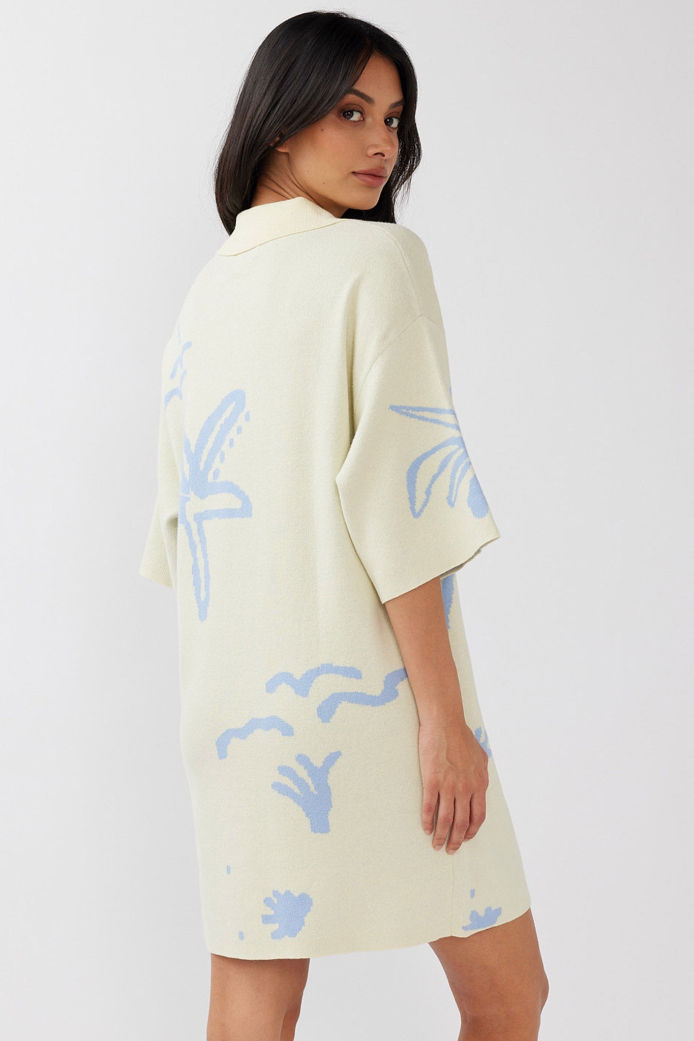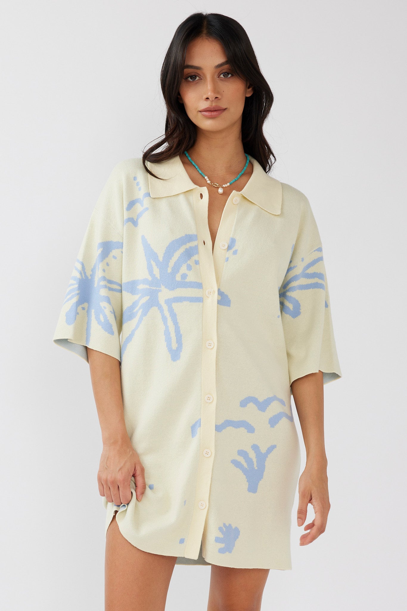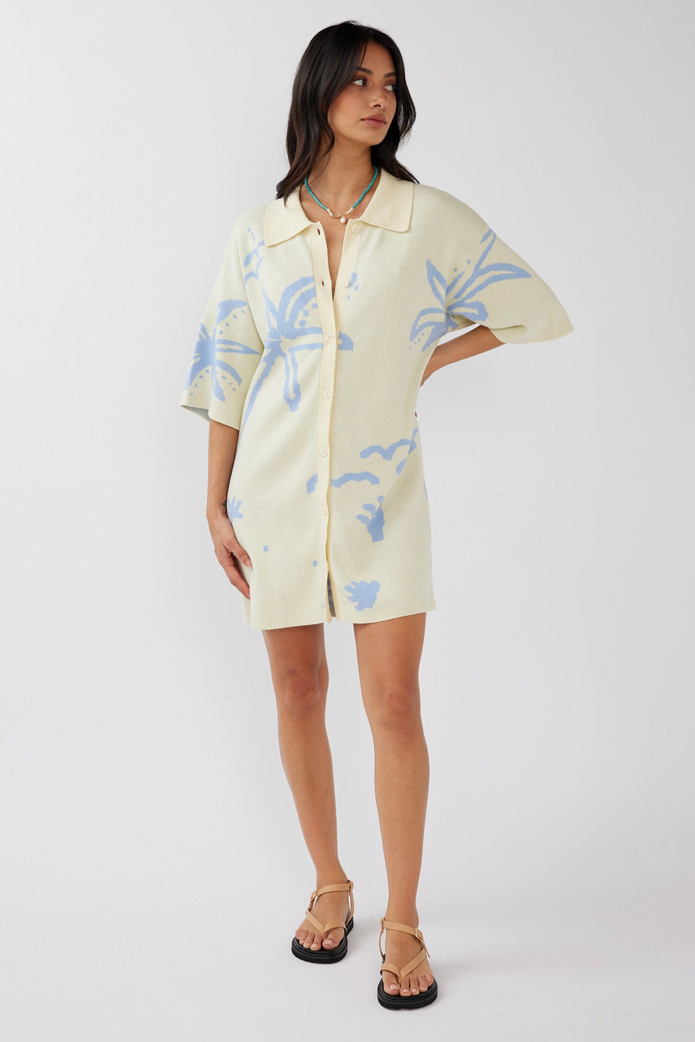 Nalani Button Up Knit Dress Lemon/Baby Blue