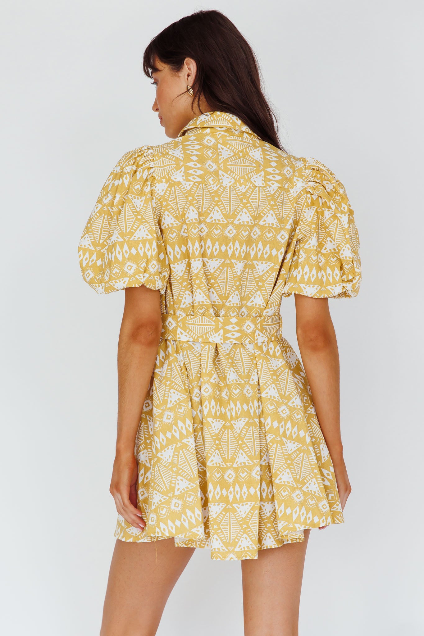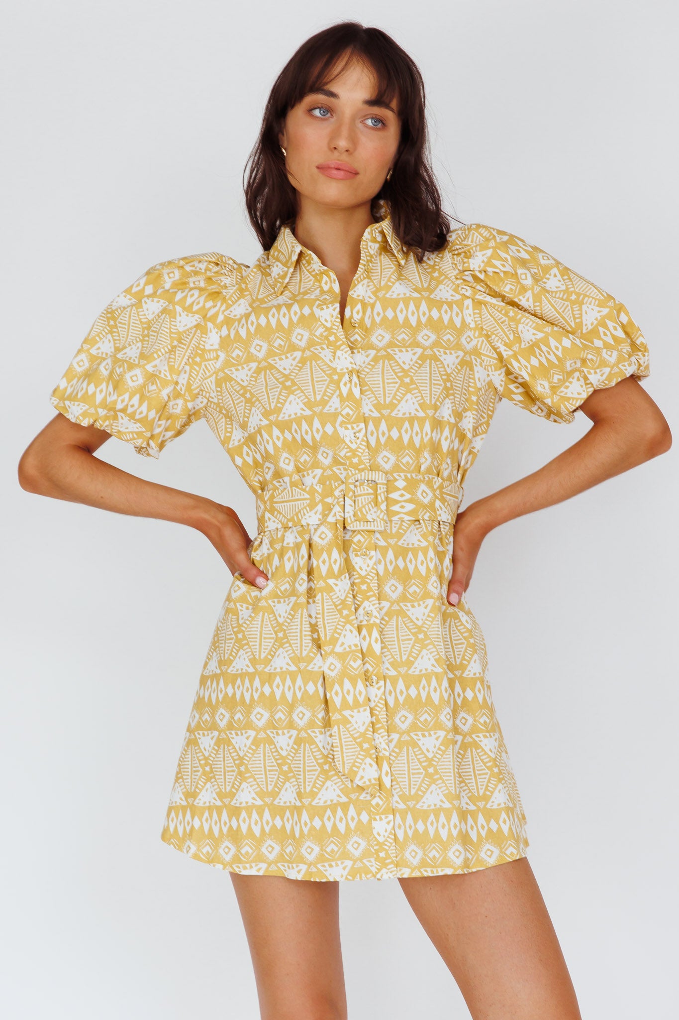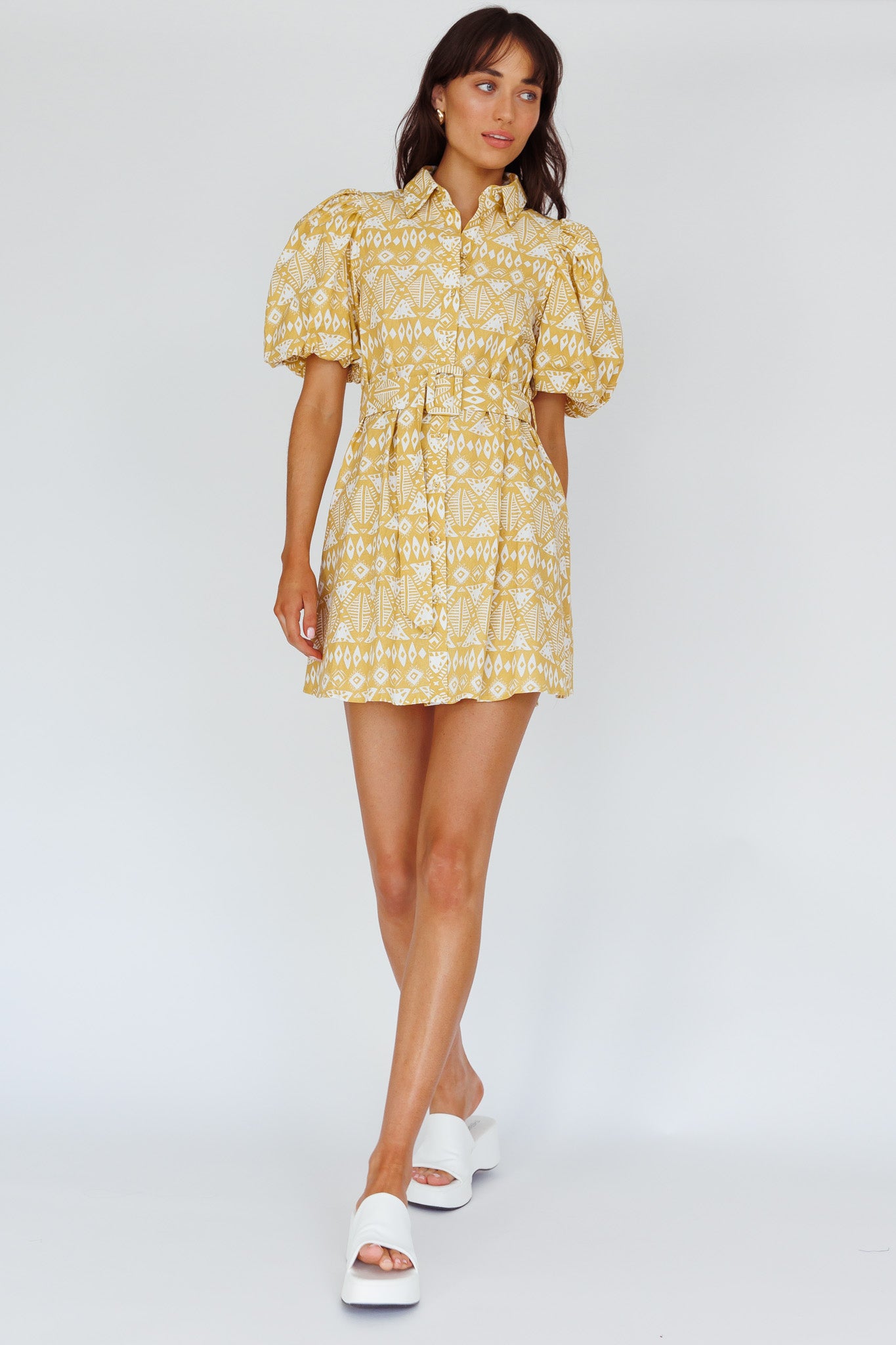Nanette Puff Sleeve Belted Mini Dress Print Yellow