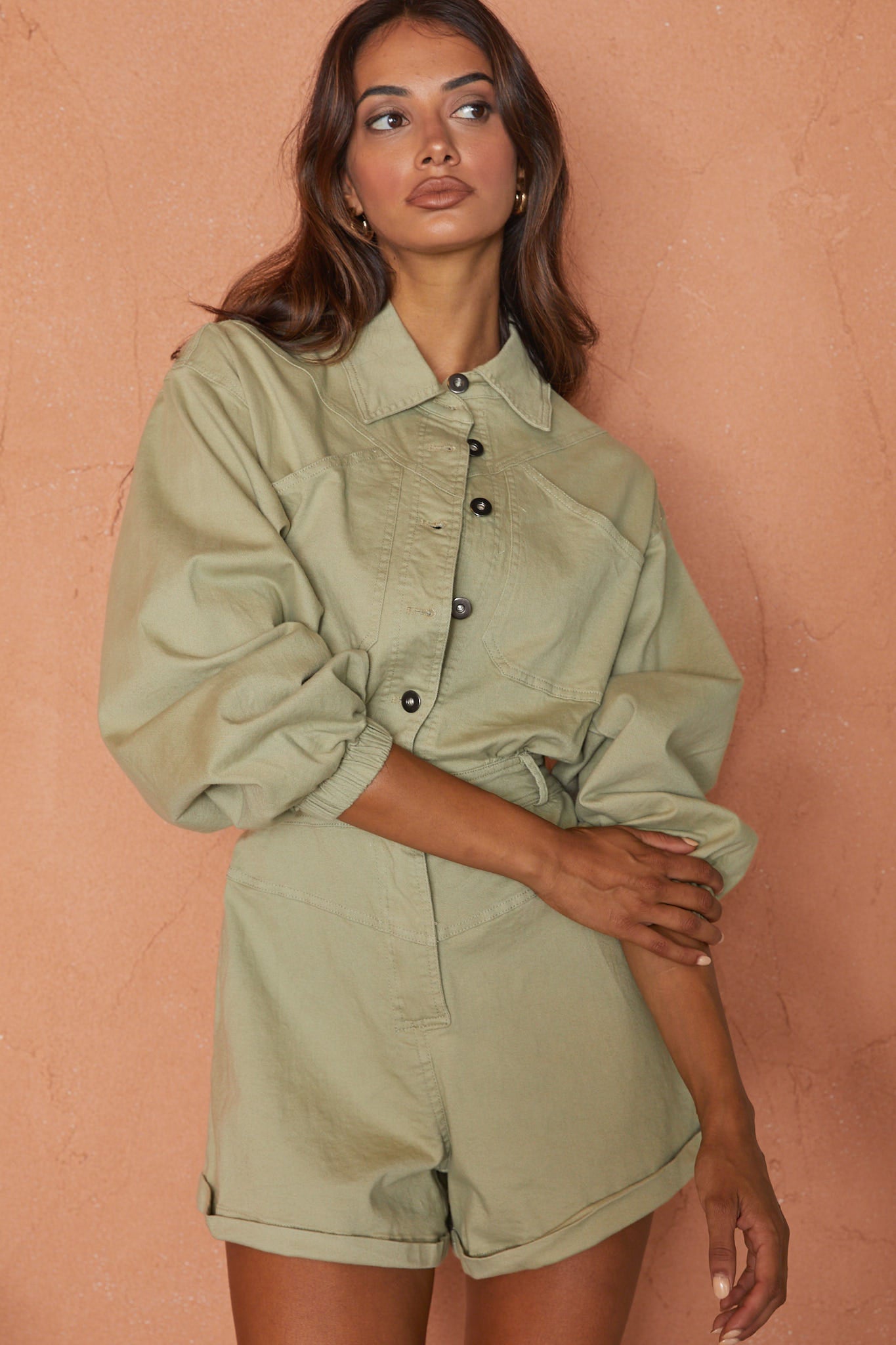 Hello, gorgeous! Seize the day in our super cute New Day romper. We are loving the pocket detail in the chest and button-up style. It's giving us exotic safari vibes and we are here for it. Team it with brown, knee high boots for a hot look we can't get enough of.