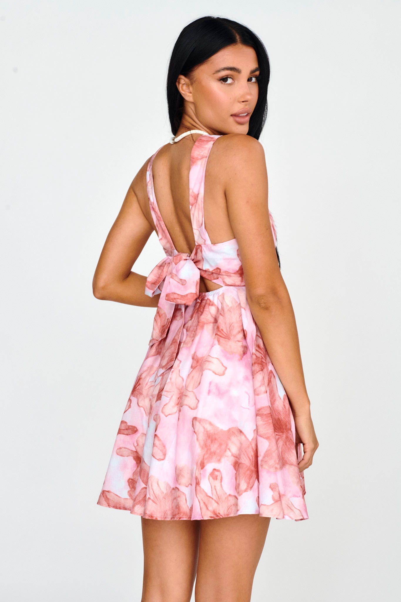 Twirl through your day in our pretty New Horizons mini dress. Featuring a flattering square neckline and tie in the back. It's perfect for weekend brunch with your besties. Team it with a saddle bag and mules for a look that will turn heads.