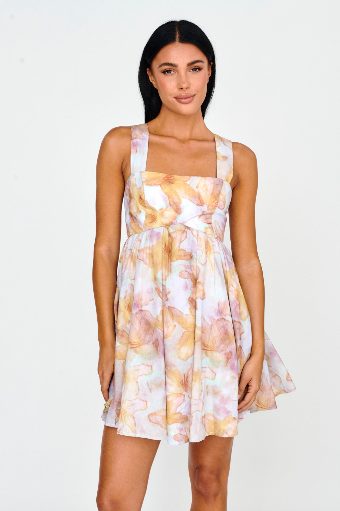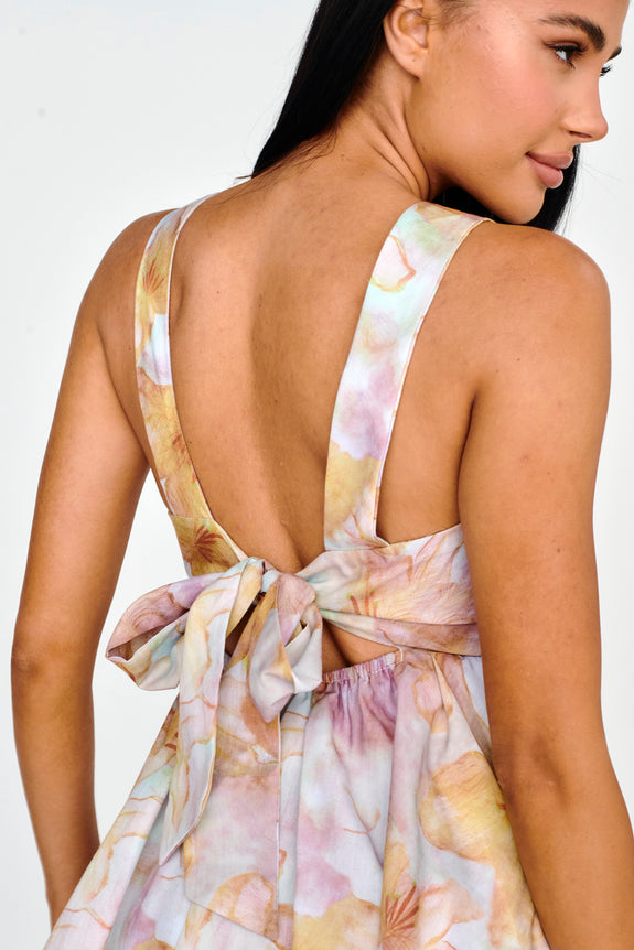 Twirl through your day in our pretty New Horizons mini dress. Featuring a flattering square neckline and tie in the back. It's perfect for weekend brunch with your besties. Team it with a saddle bag and mules for a look that will turn heads.