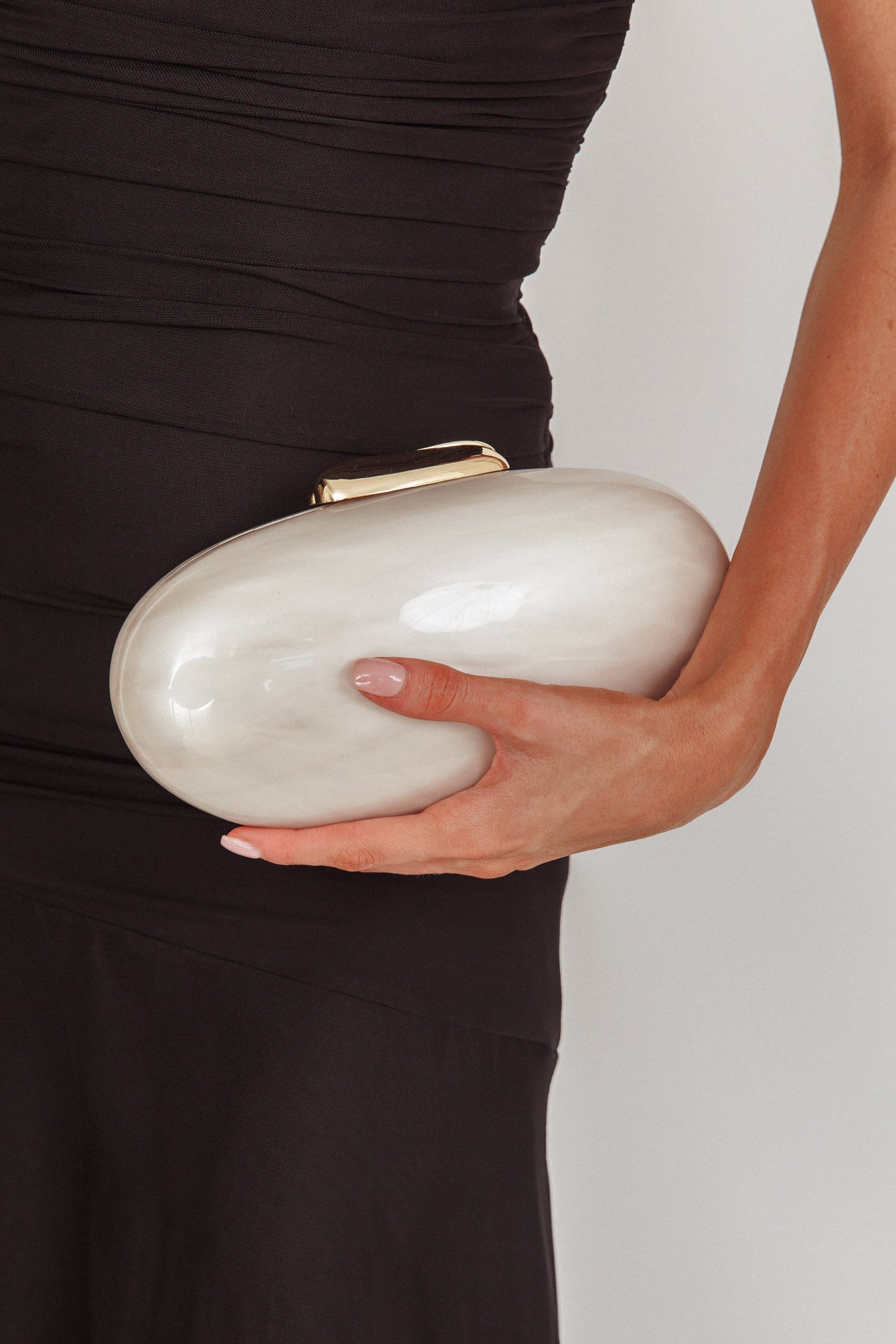 Complete your look with our gorgeous Nialah clutch. Featuring a pearl finish and oval shape, this one is about to become your new go-to for a night out with the girls. Team it with your fave Summer dress and kitten heels for a super hot look.