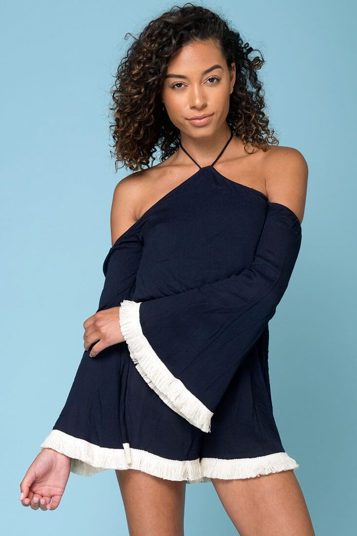 K.I.S.S.: Keep it simple, sweetie! The Nirvana Bell Sleeve Casual Romper is a beautiful and straightforward design with bell ruffles along the shorts and bell sleeves. Pair with tasteful heeled sandals.
