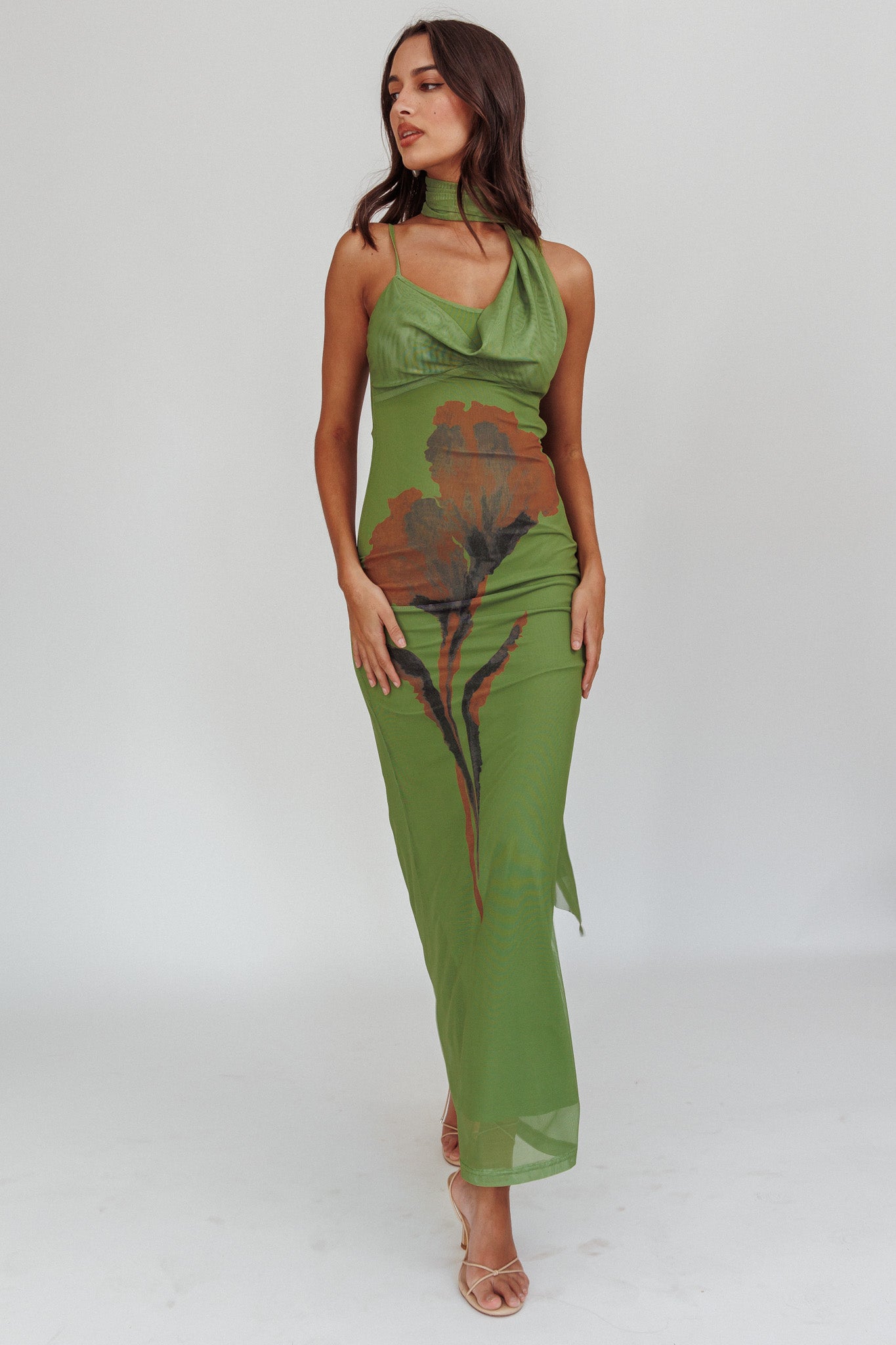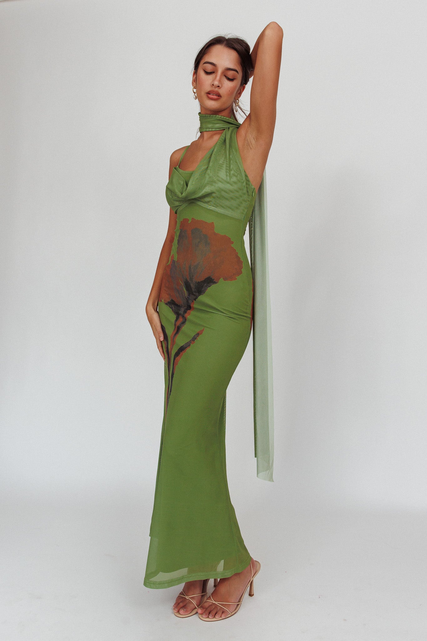 No Surprises Scarfed Floral Maxi Dress Green