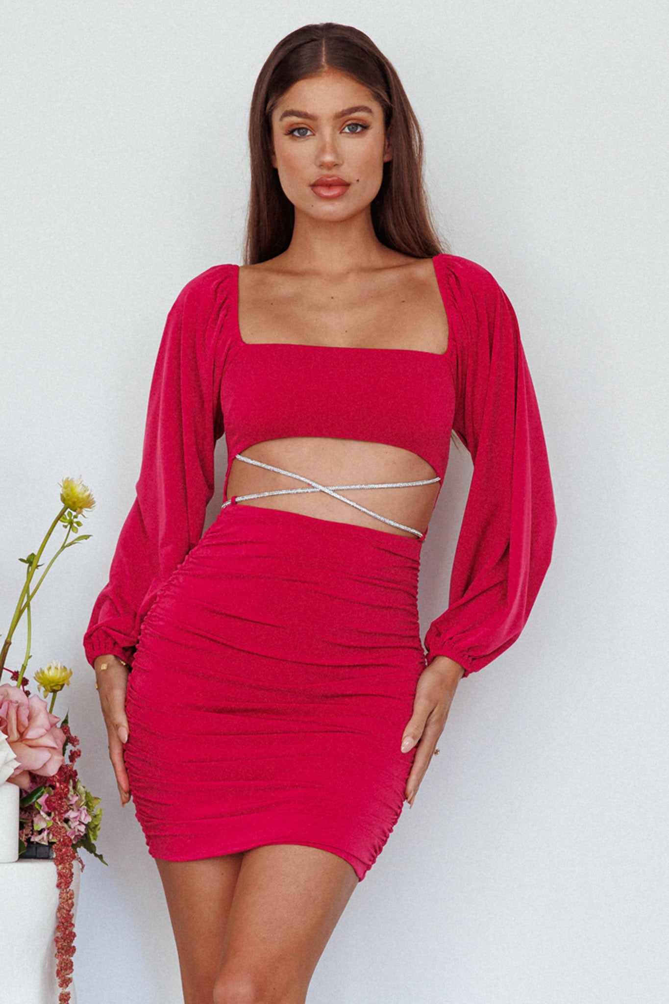 Make an entrance in our hot Nohemi mini dress. Featuring a cut-out waist with diamante strap detail that ties in the back, we're obsessed! Perfect for a girls' night out or birthday celebration teamed with a clutch and diamante mules!