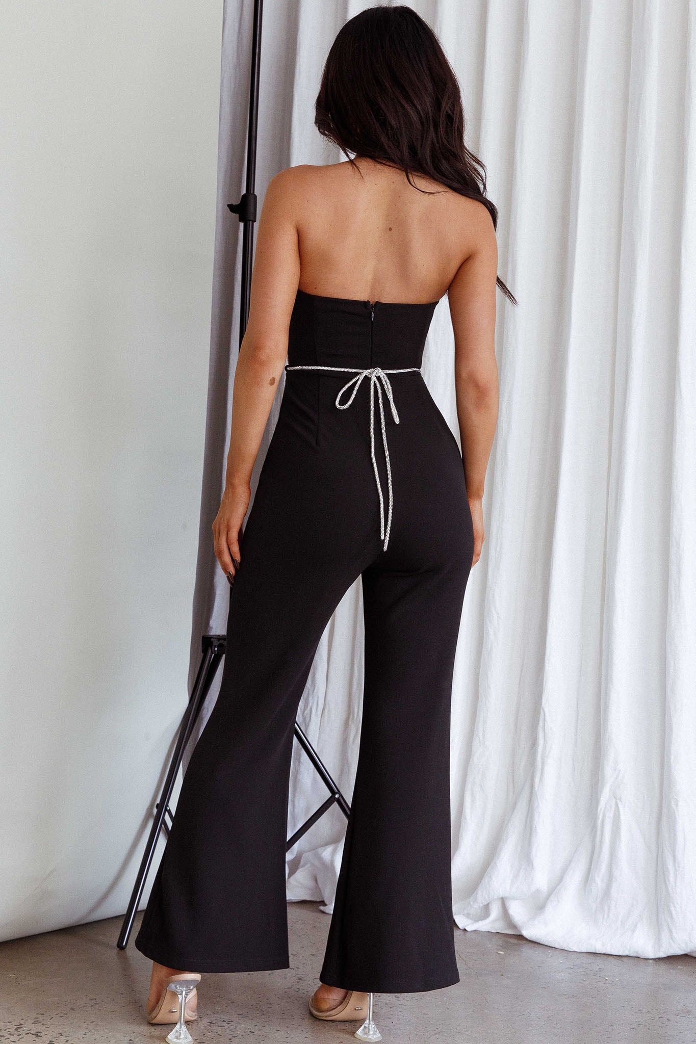 Make an entrance in our hot Nohemi jumpsuit. Featuring a cut-out waist with diamante strap detail that ties in the back, we're obsessed! Perfect for a girls' night out or birthday celebration teamed with a clutch and diamante mules!