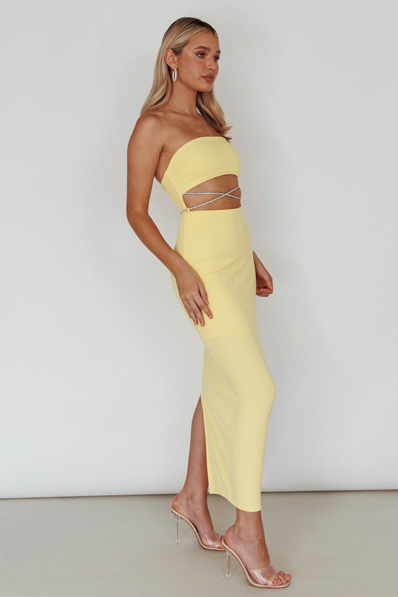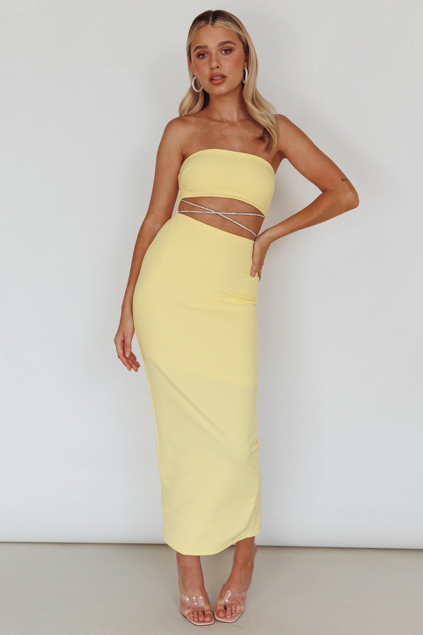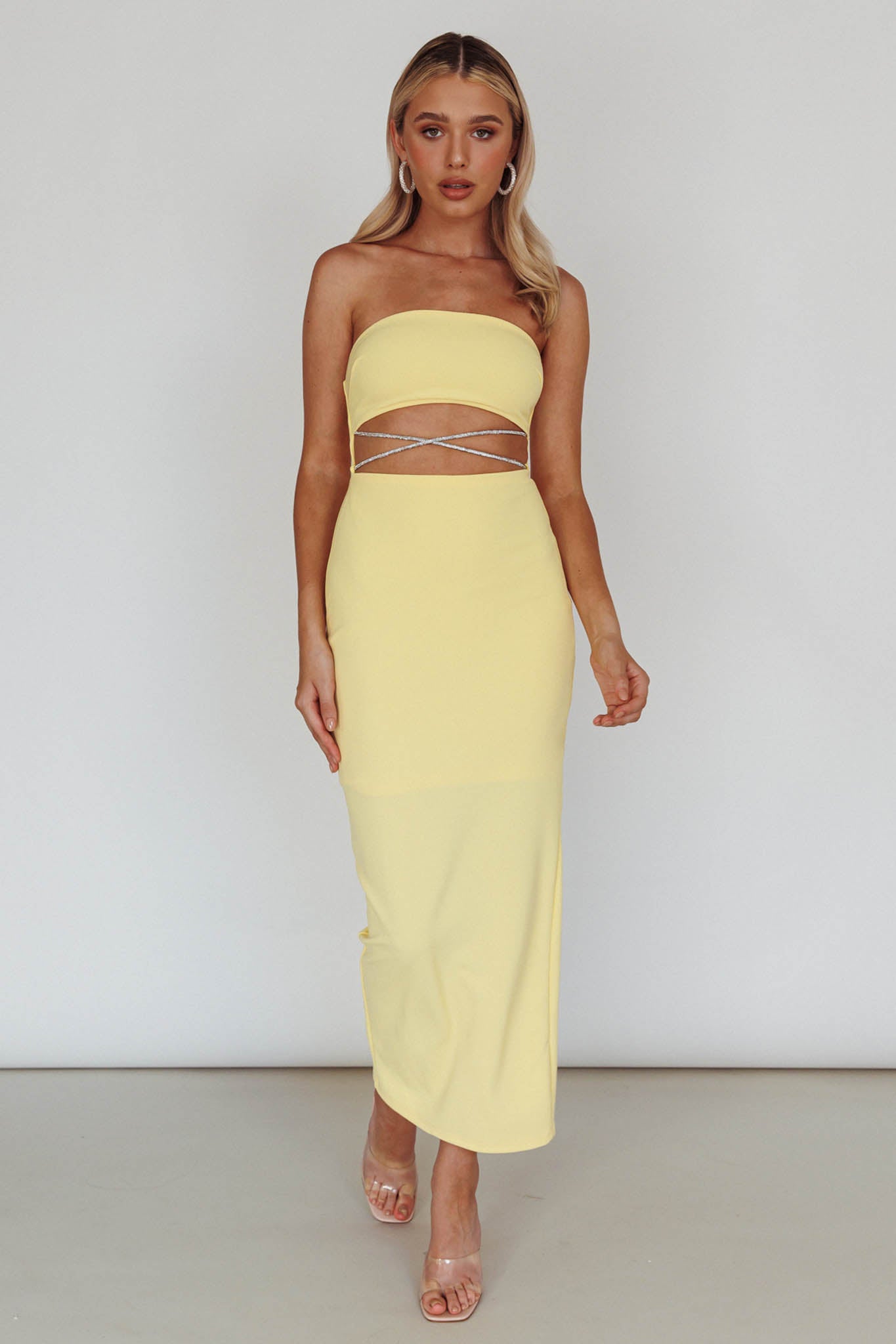 Make an entrance in our hot Nohemi midi dress. Featuring a cut-out waist with diamante strap detail that ties in the back, we're obsessed! Perfect for a girls' night out or birthday celebration teamed with a clutch and diamante mules!