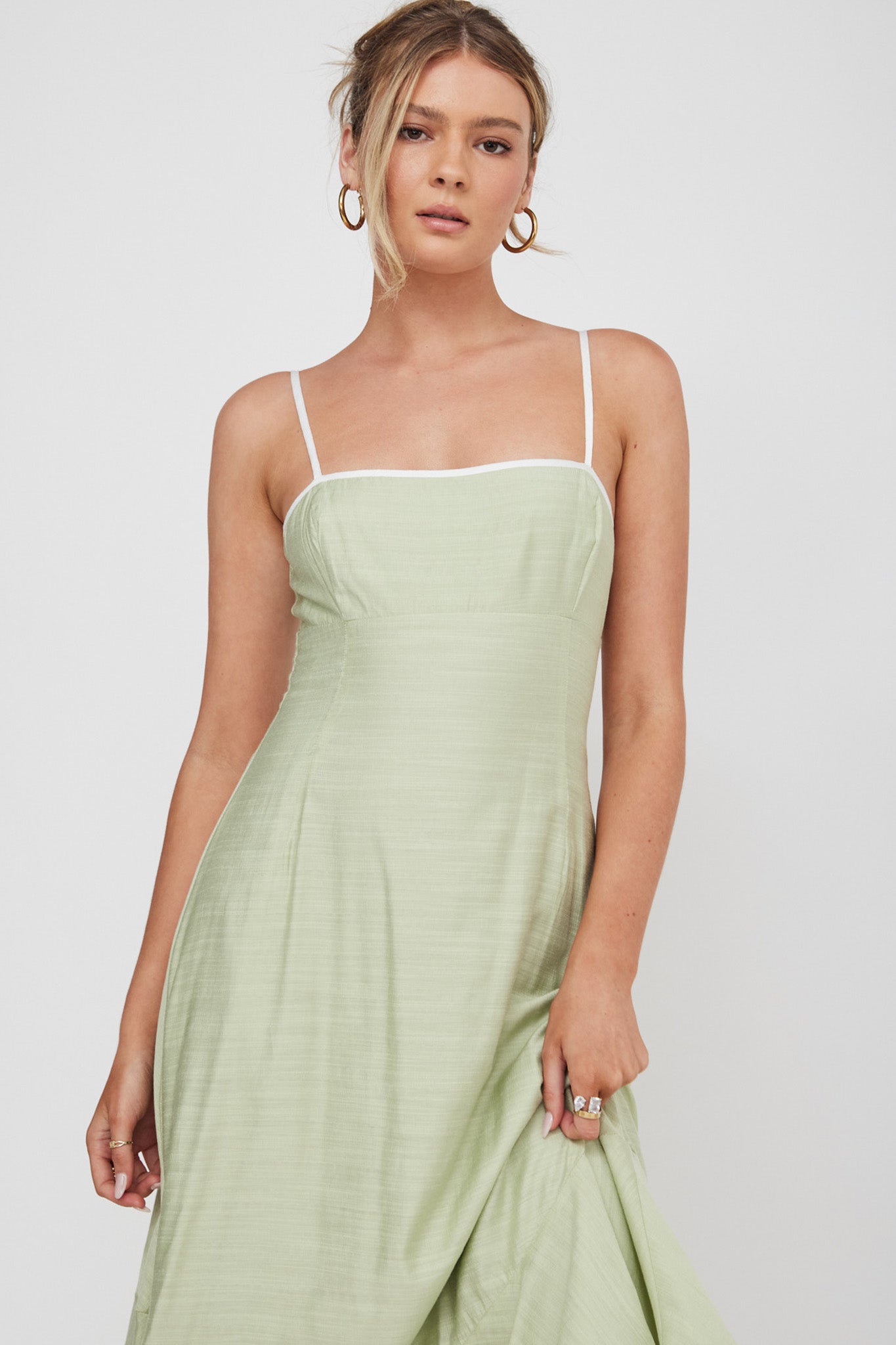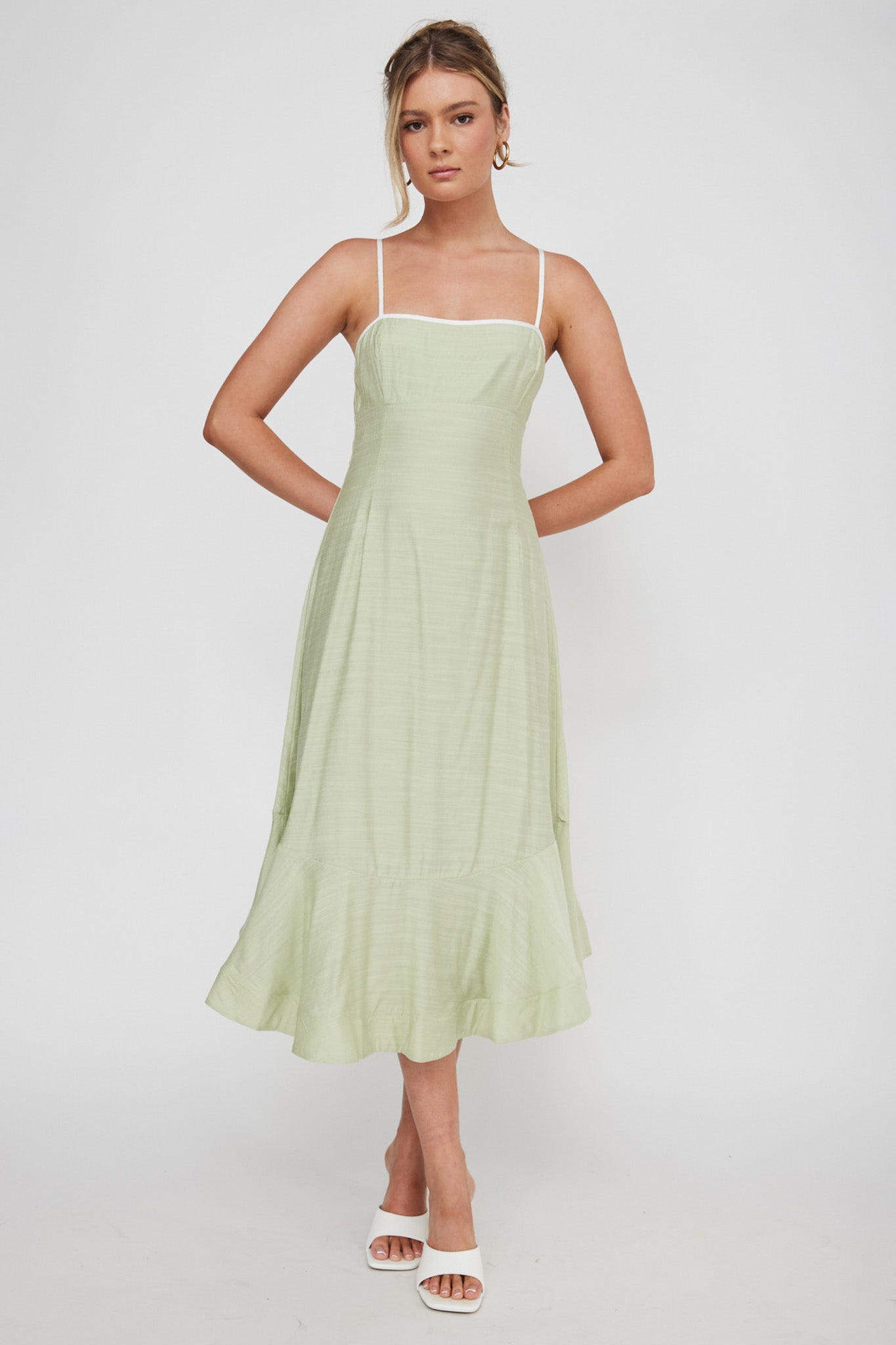 Noni Cami Strap Swing Midi Dress Pistachio