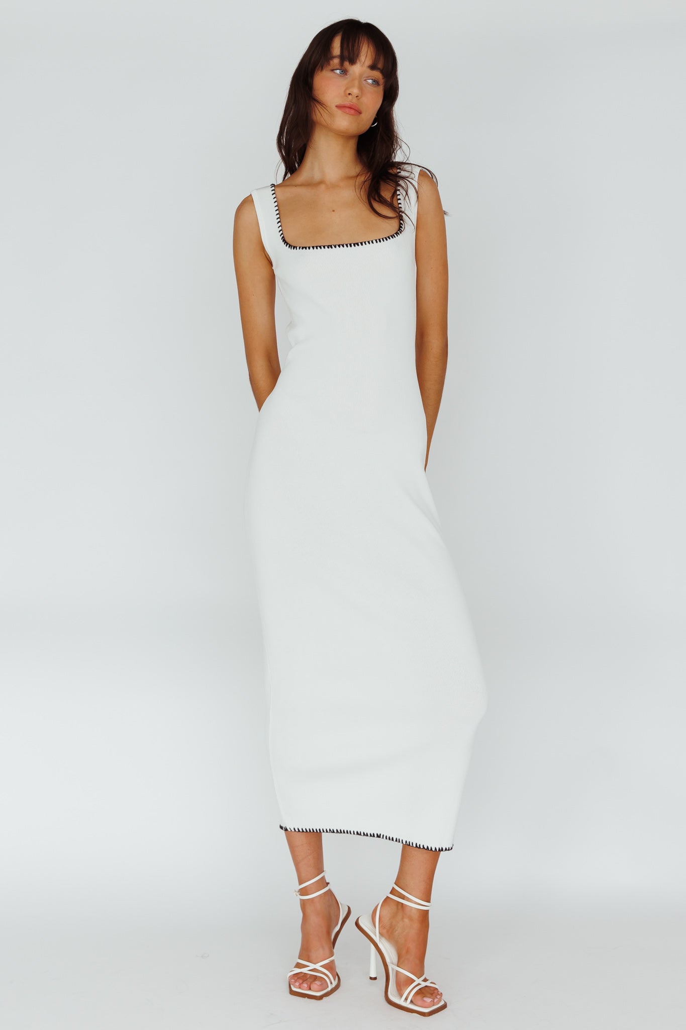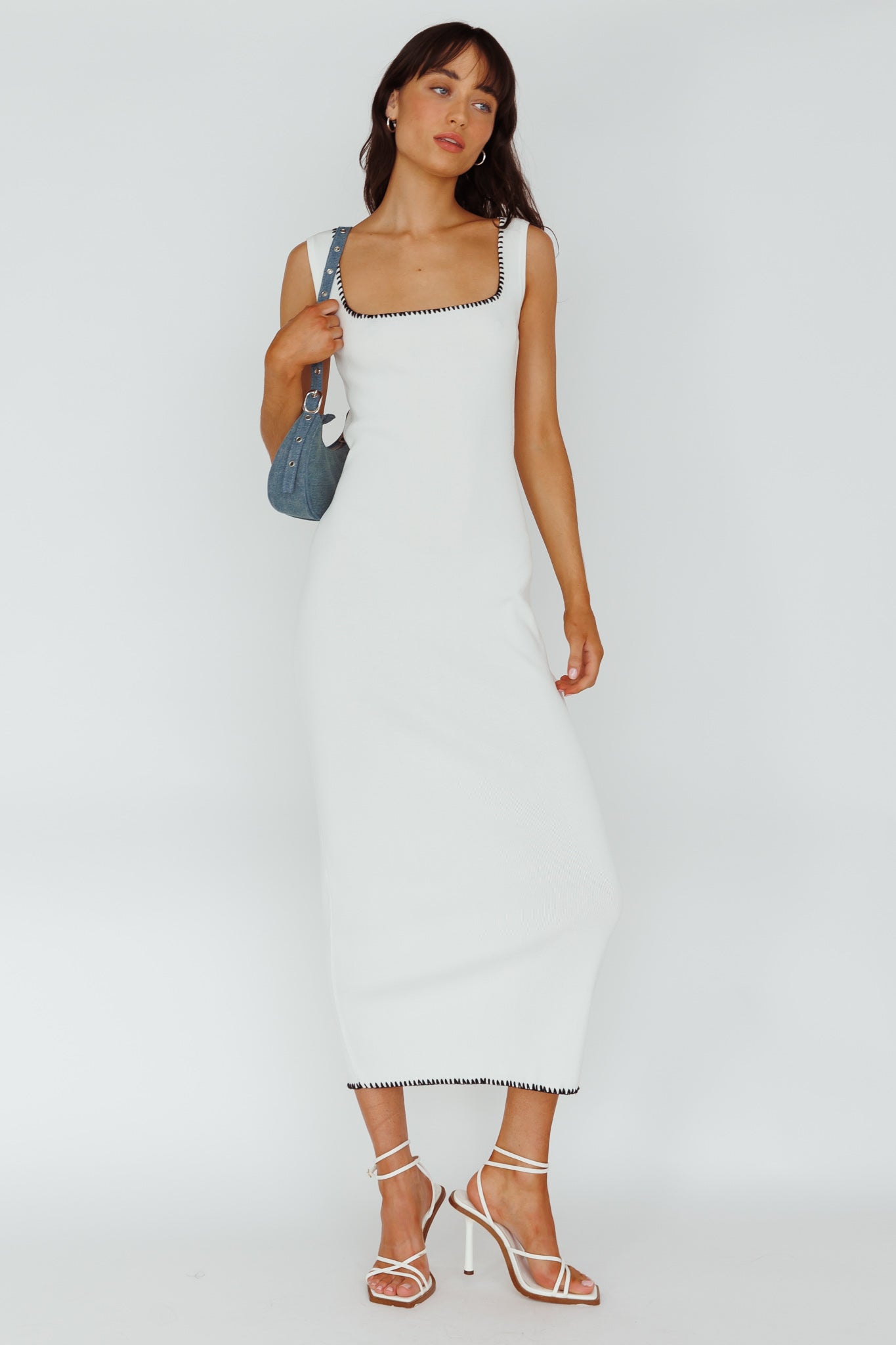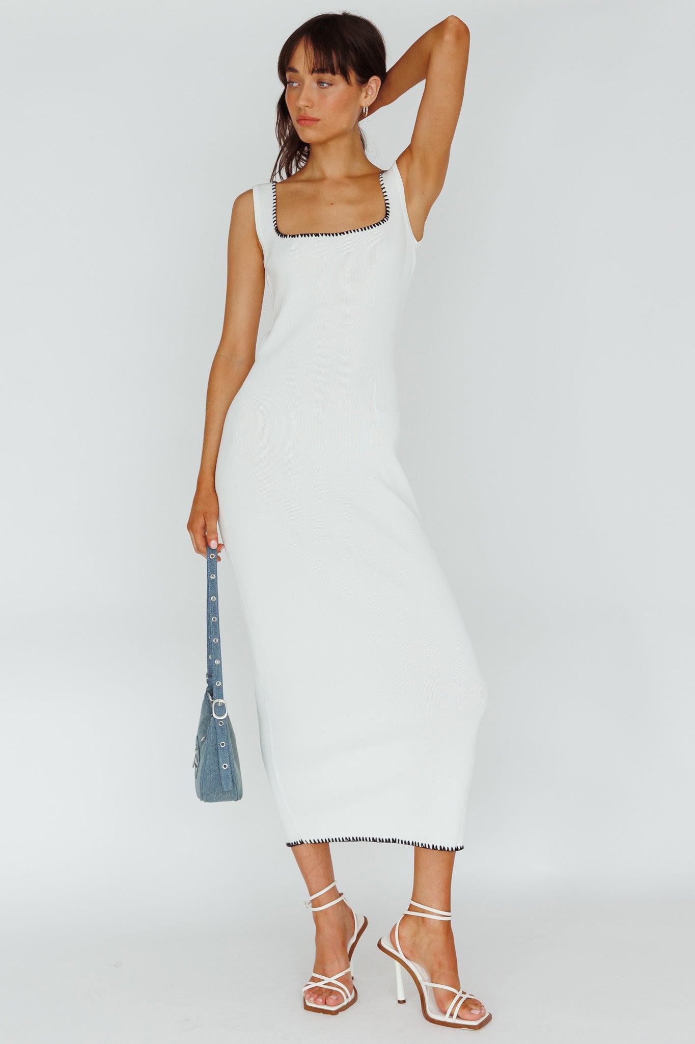 Float through the Summer in our gorgeous North Shore maxi dress. Featuring a stretchy knit and blanket stitch trim. It's perfect for weekend brunch with your besties teamed with mules and a baguette bag.
