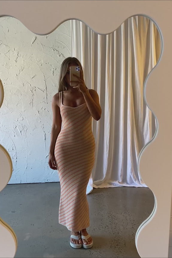 Float through the Summer in our gorgeous North Shore maxi dress. Featuring a stretchy knit and striped pattern throughout. It's perfect for a sunny beach day thrown over your bikini and teamed with sandals and a straw tote.