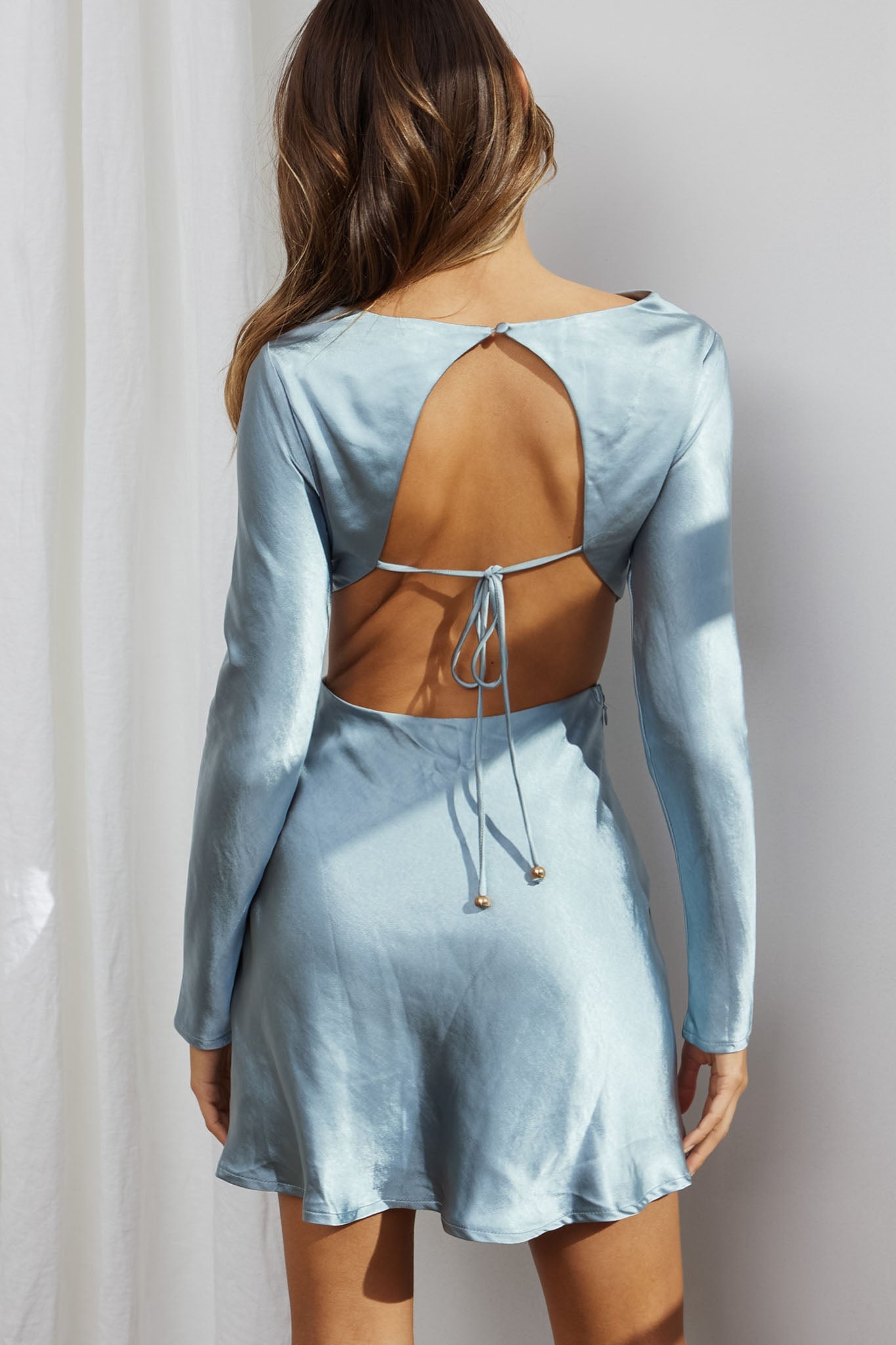 Northern Lights Long Sleeve Open Back Satin Mini Dress Blue