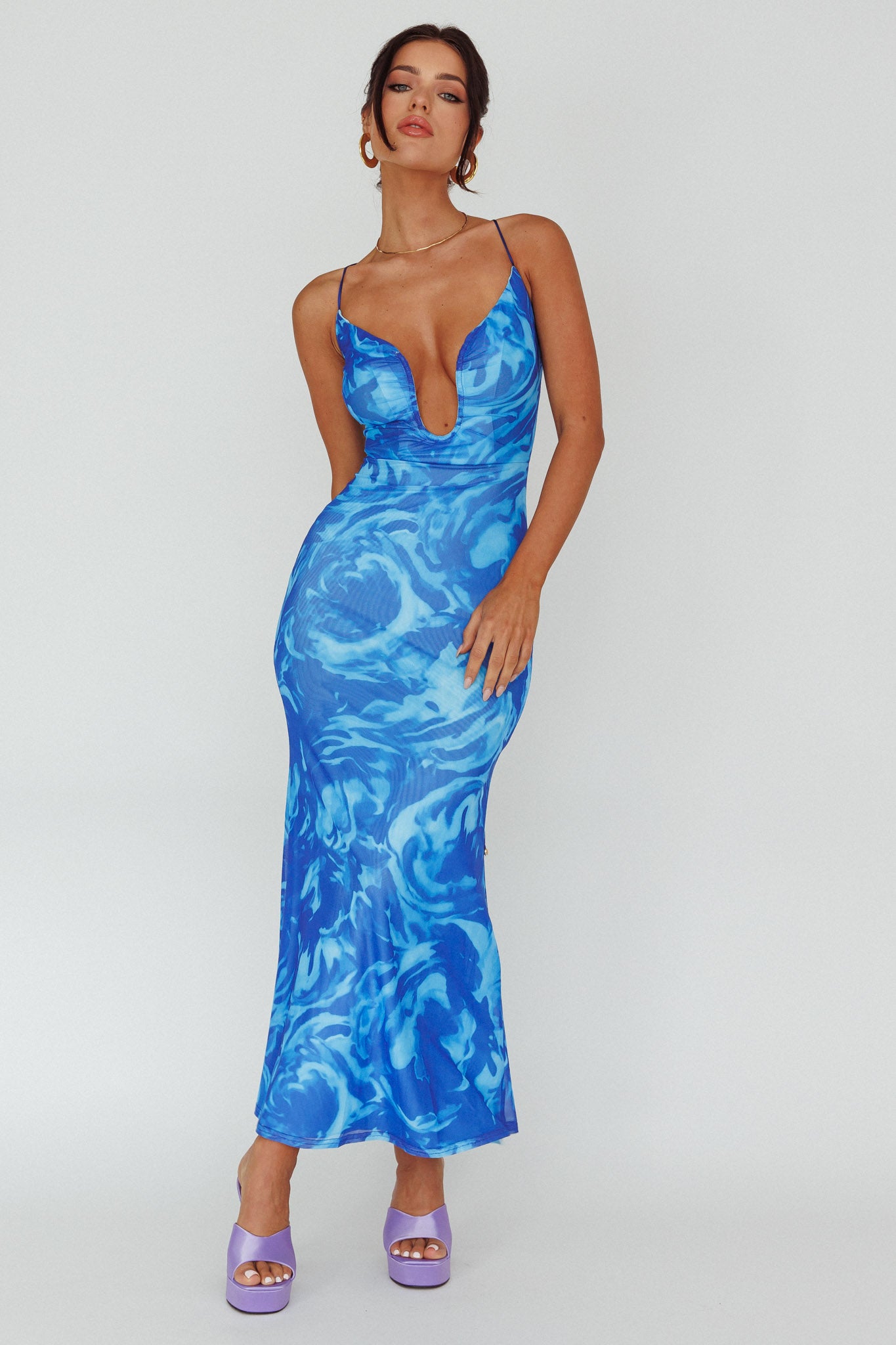 Nouveau U-Neckline Midi Dress Marbled Blue