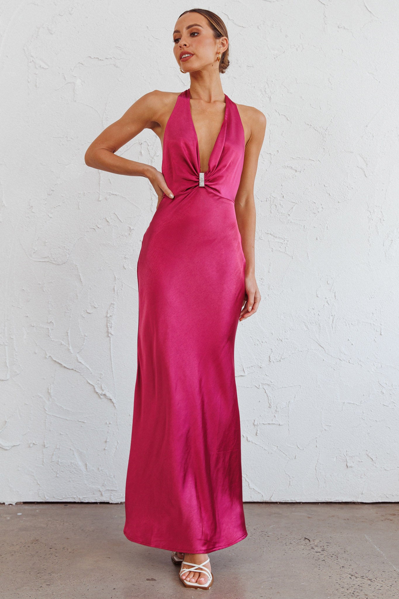 Oasis Diamante Halterneck Maxi Dress Fuchsia