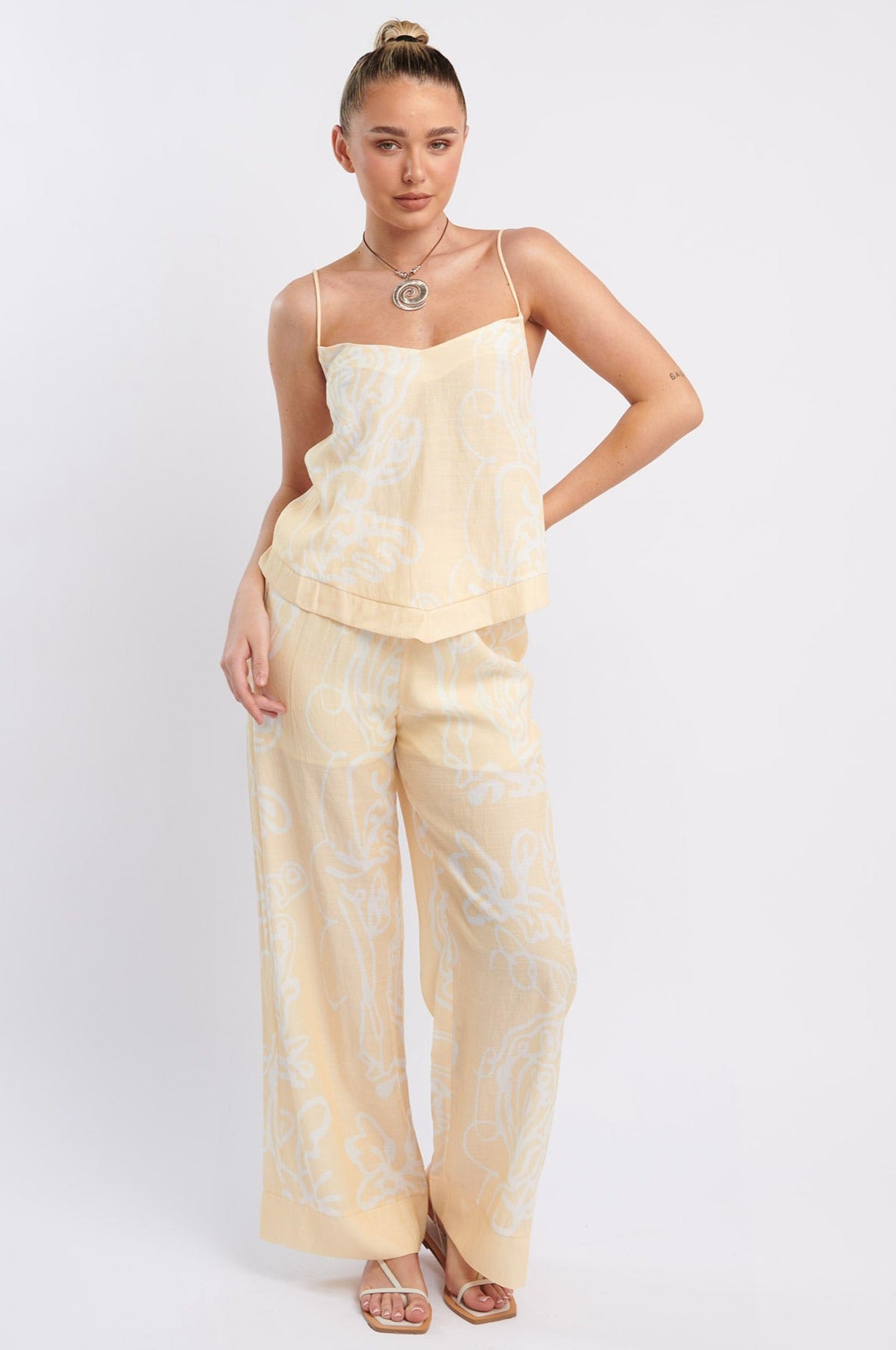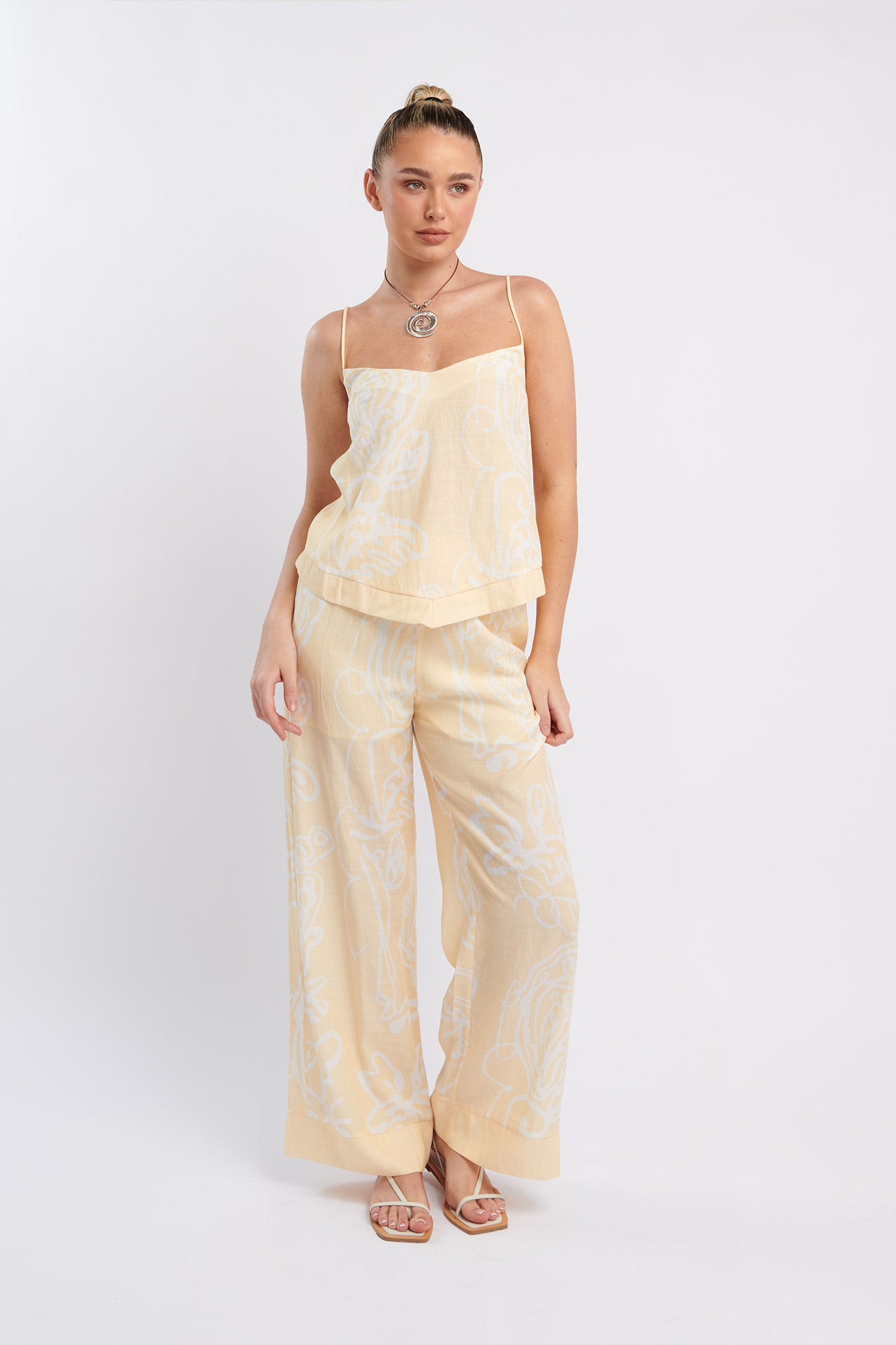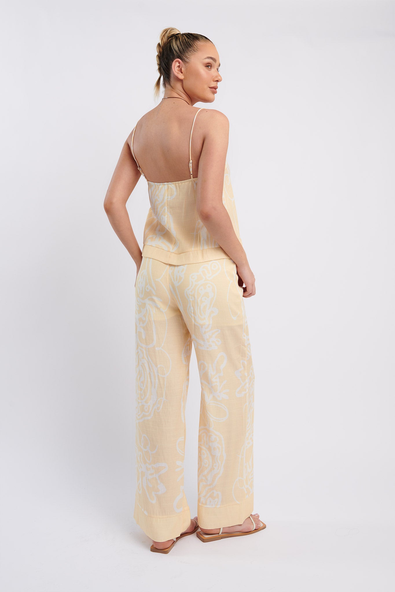 Float through your weekend in our cute Oceania pants. We are in love with their light, breezy fabric -perfect for slow Saturdays strolling the vintage markets. Team them with their matching top and slides for an effortless, chic look.