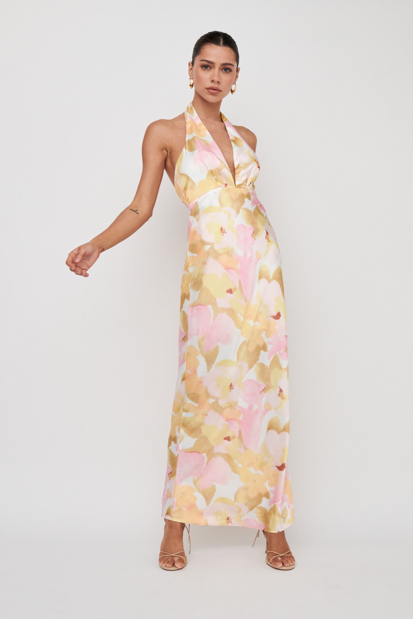 Of Your Dreams Plunging Halter Dress Floral Pink