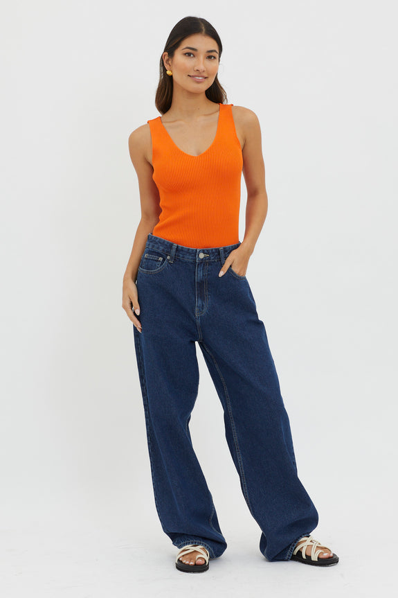 Off-Duty V-Neck Ribbed Knit Top Orange
