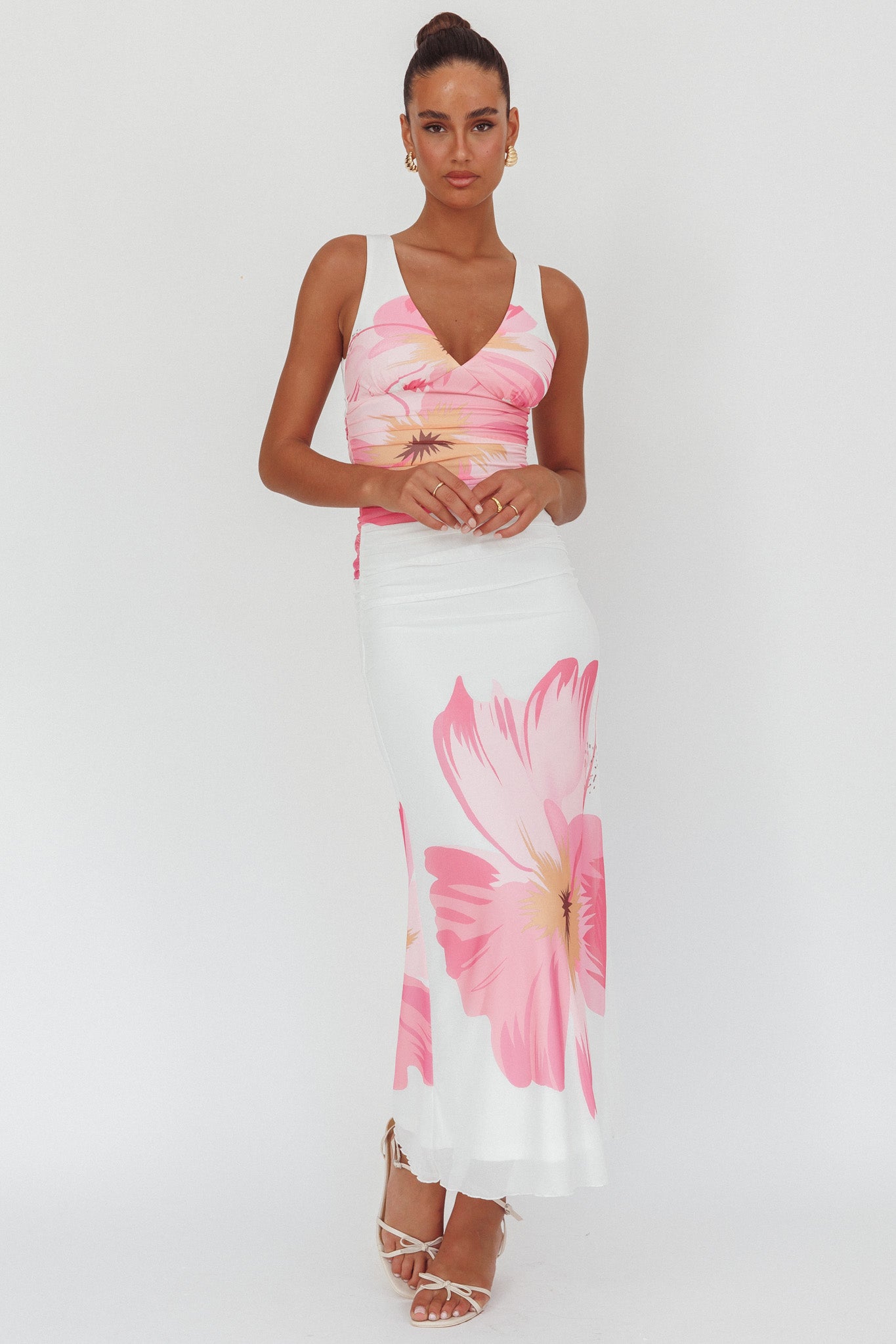 Oliana V-Neck Mesh Maxi Dress Hibiscus White/Pink
