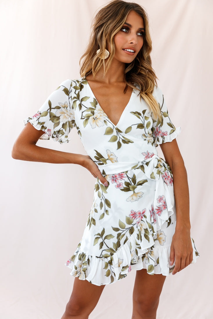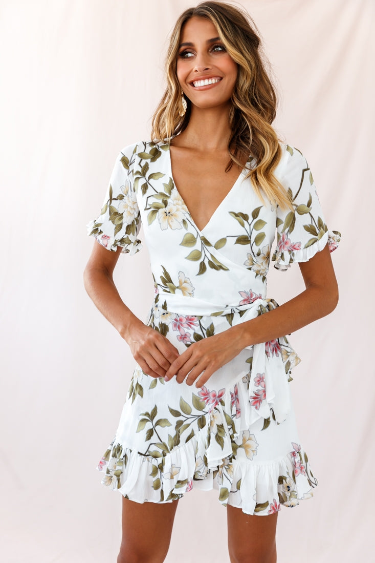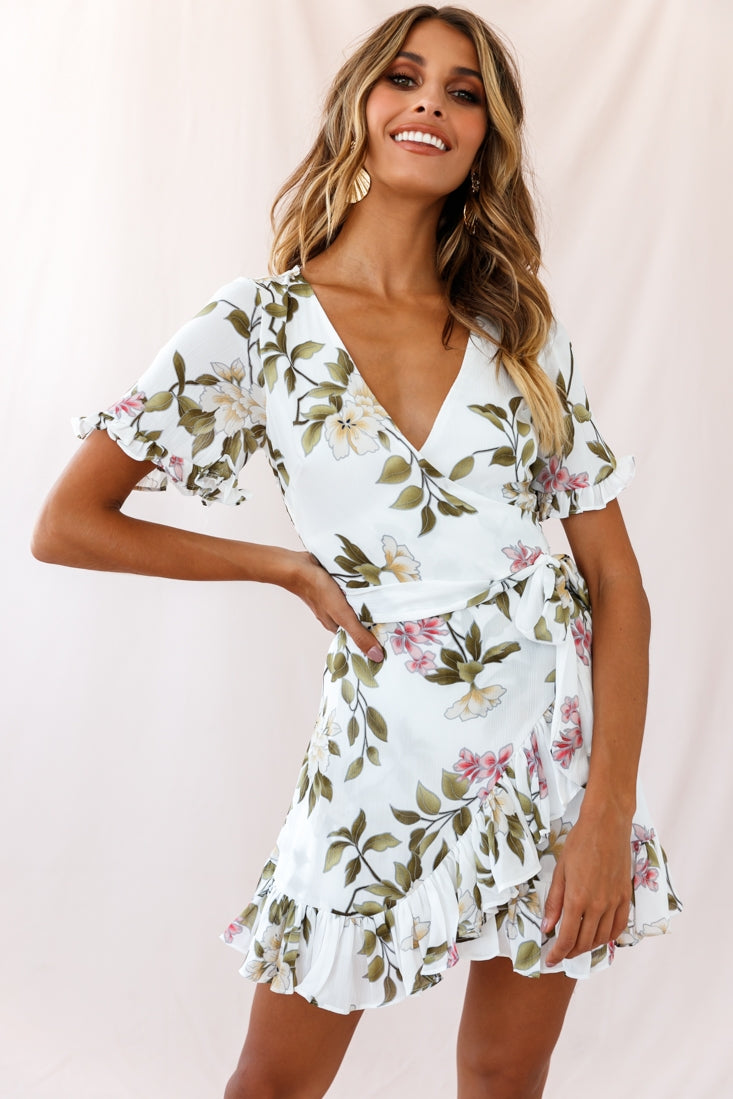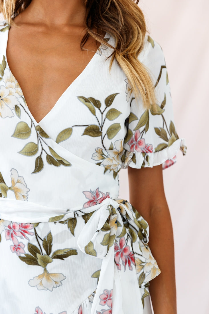 You are one classy lady in our elegant Omara dress. Featuring the prettiest ruffle-trimmed sleeves, a ribbon tie around the waist and completed with a frilly hemline and invisible zipper in the back, you're sure to turn some heads. Team it with clear heels and Jackie-O glasses for a timeless look.