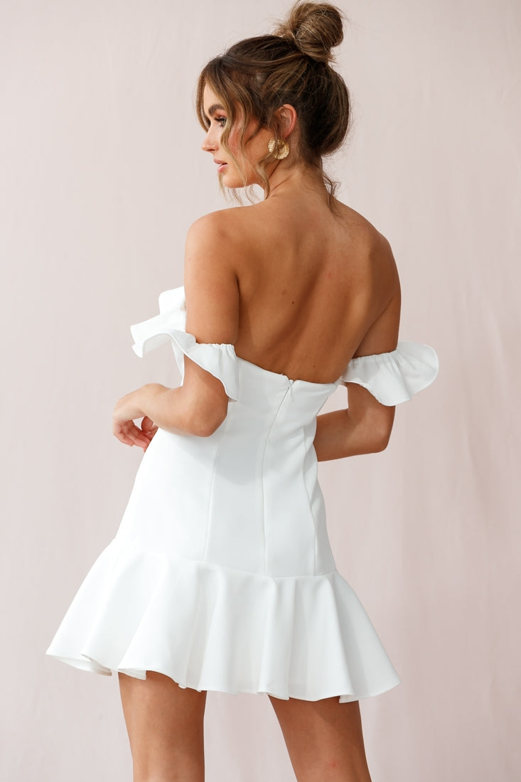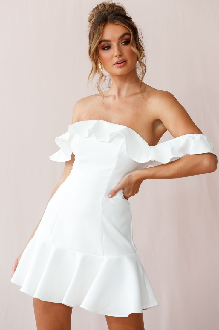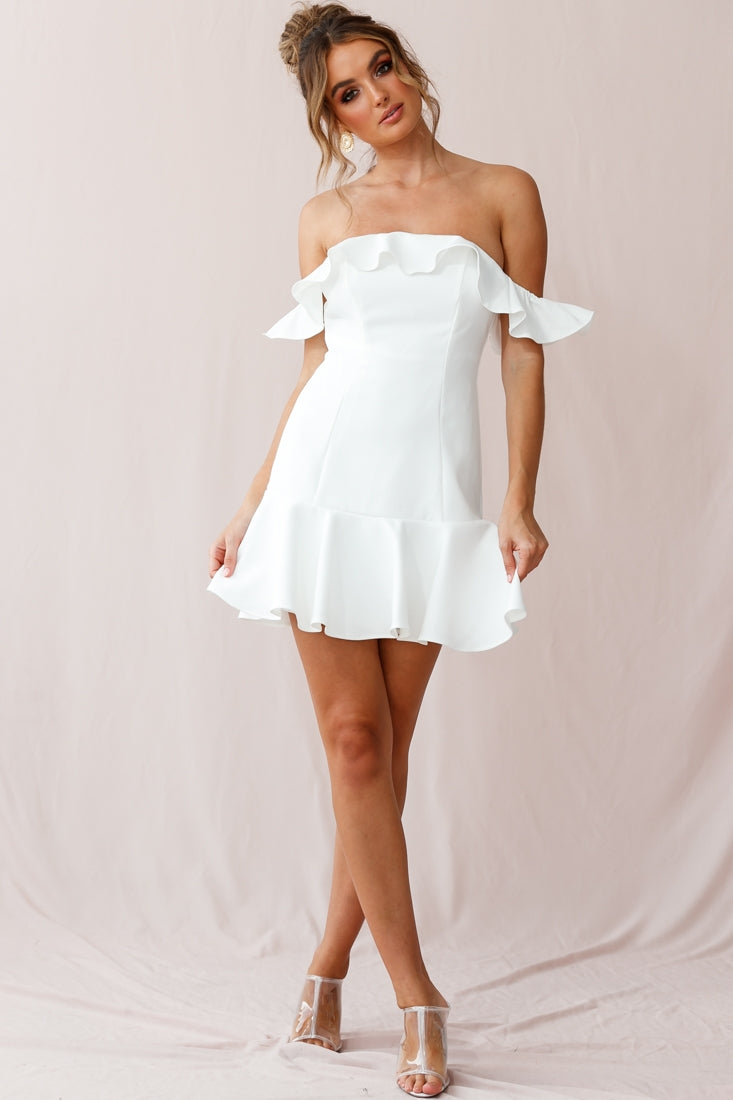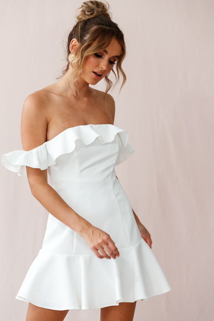 Get ready to dance the night away in our Ondine dress. Fully lined, it features an on-trend Bardot neckline, fluted hem and ruffle-trimmed bust. Wear it on your next girls' night out teamed with strappy heels and a bright lip. Get it, girl!