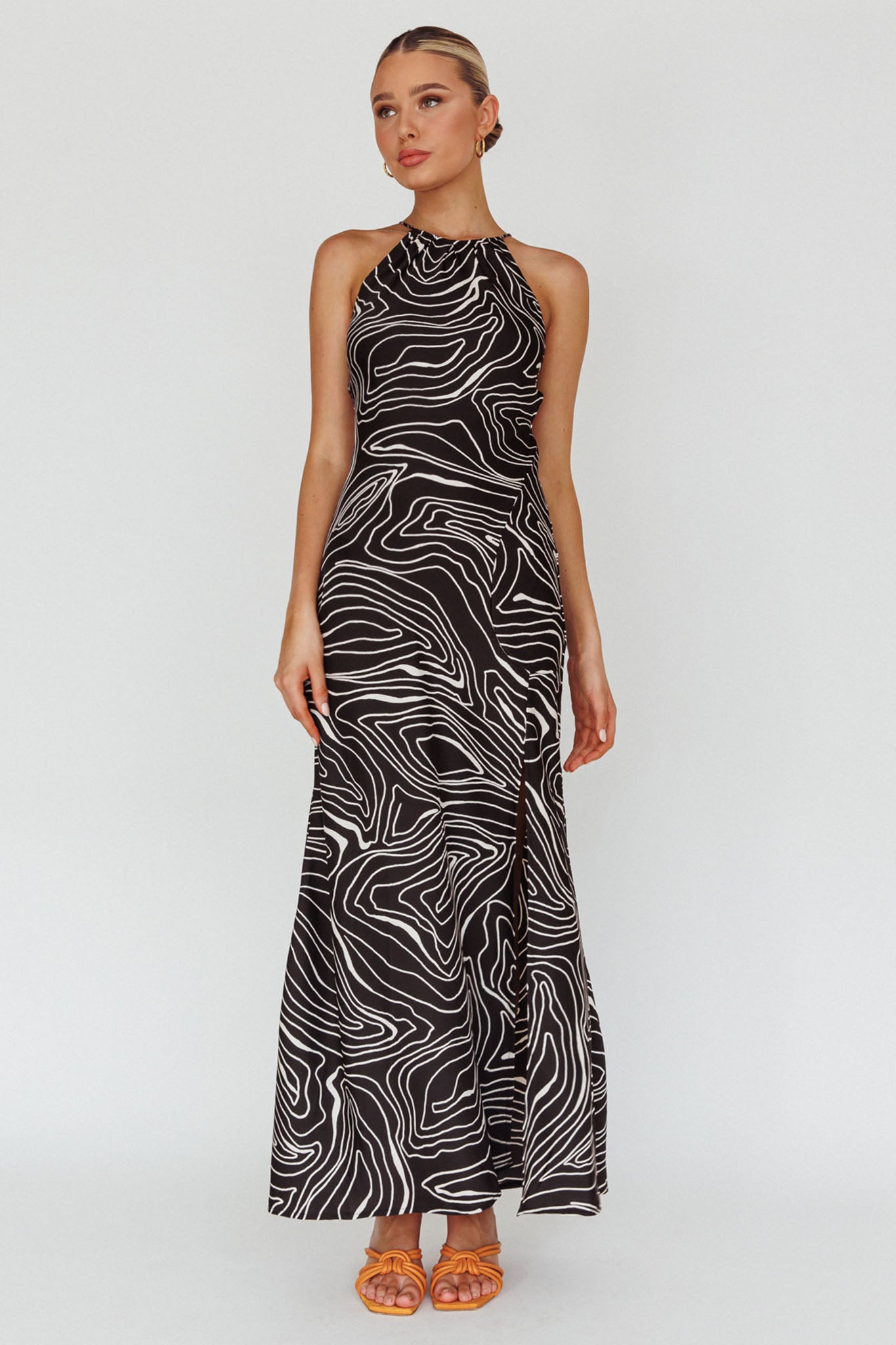 Onella Halterneck Laced Back Maxi Dress Ripple Black
