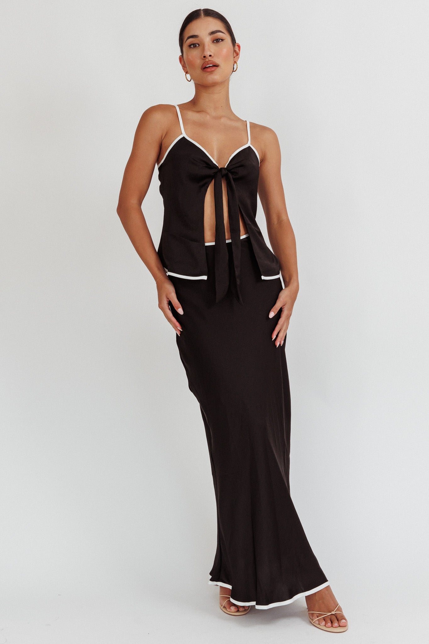 Turn heads in our super chic Only One top. It features a tied front and contrasting trim. It's perfect for Friday night with your girls' teamed with its matching skirt and strappy, tie-up heels.