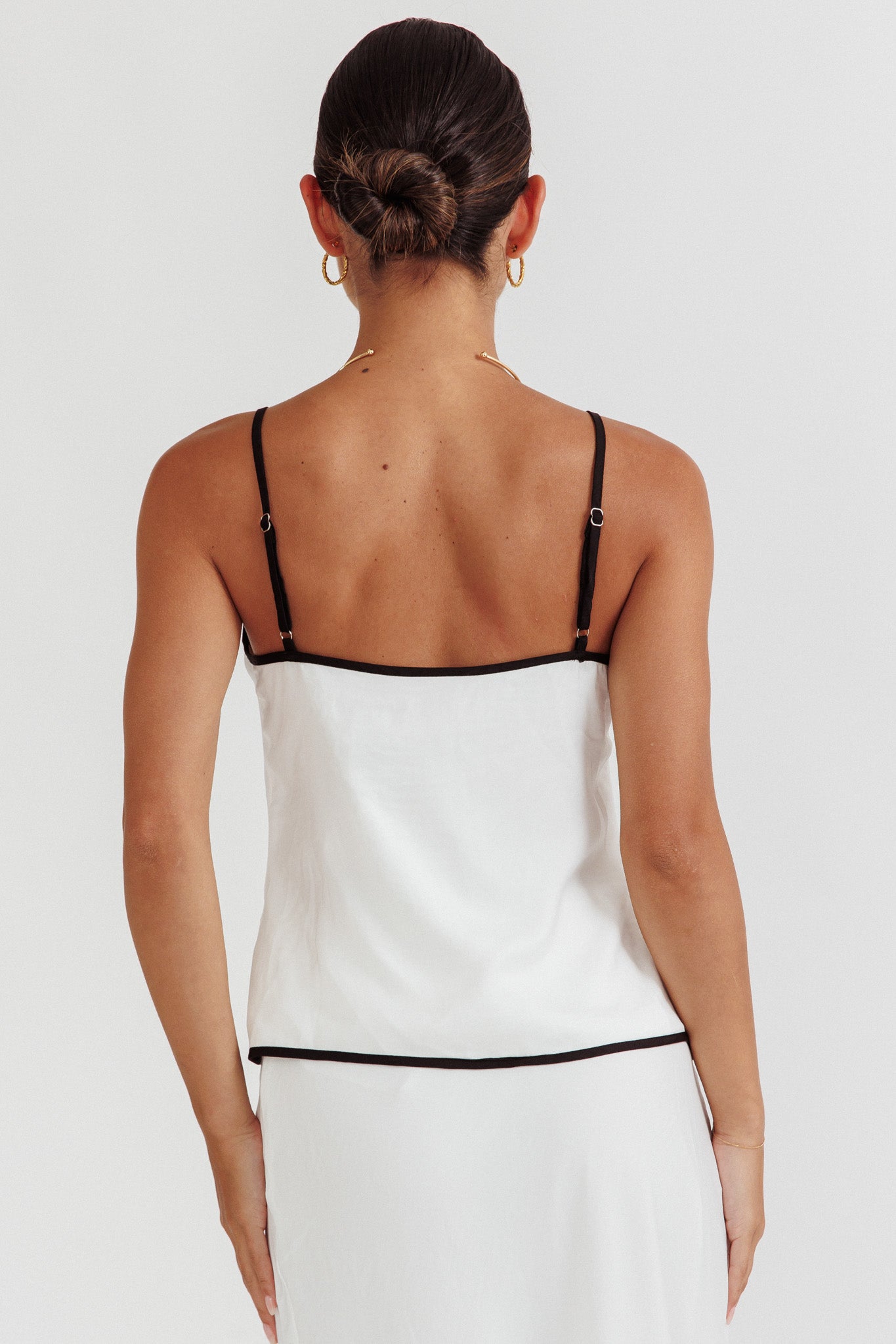 Turn heads in our super chic Only One top. It features a tied front and contrasting trim. It's perfect for Friday night with your girls' teamed with its matching skirt and strappy, tie-up heels.