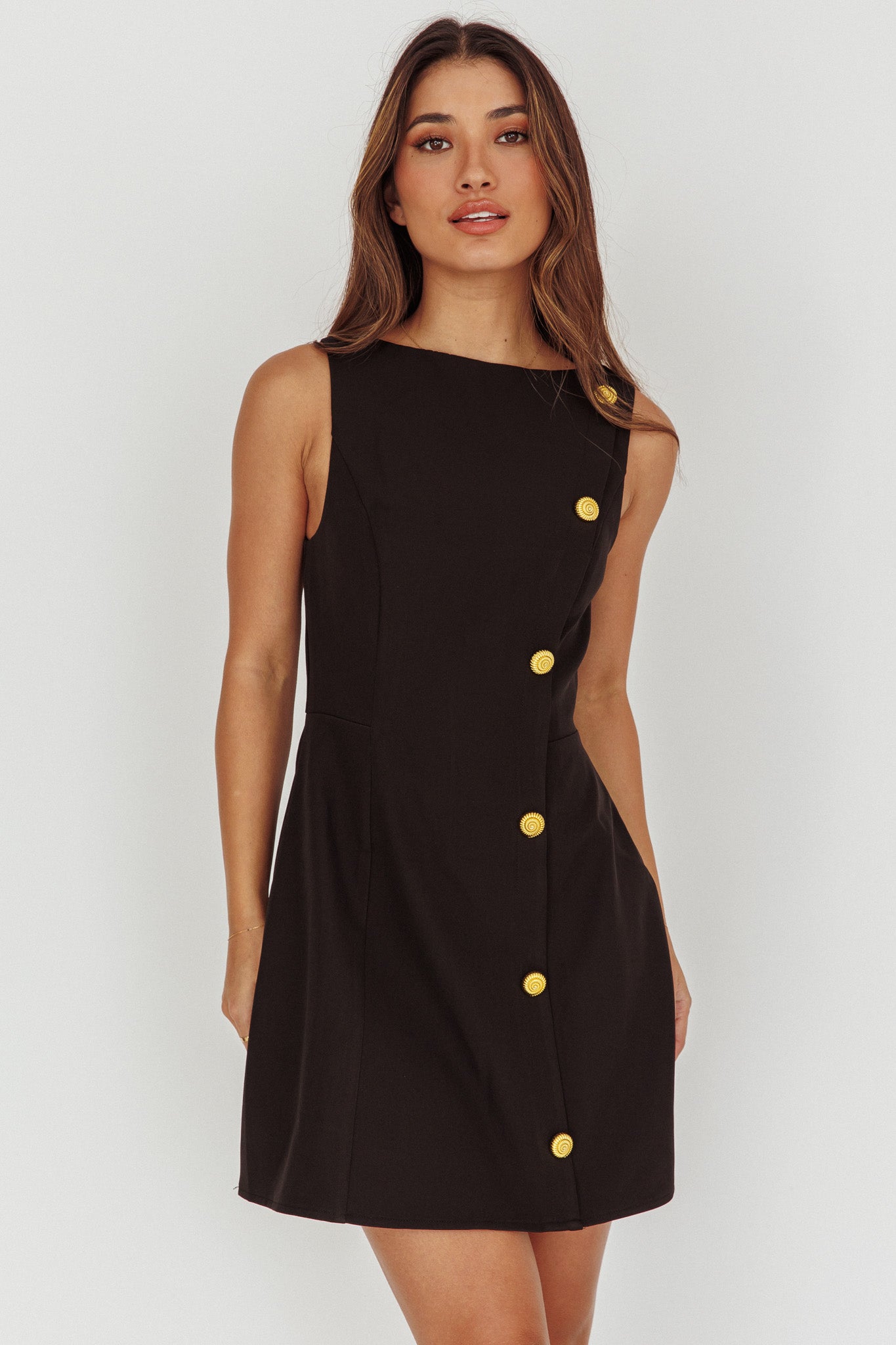 Get ready to turn heads in our Opulent mini dress. We are head over heels for its gorgeous buttons and A-line silhouette. It's the perfect choice for a wedding or special date night, teamed with heels and a mini purse for a chic look.