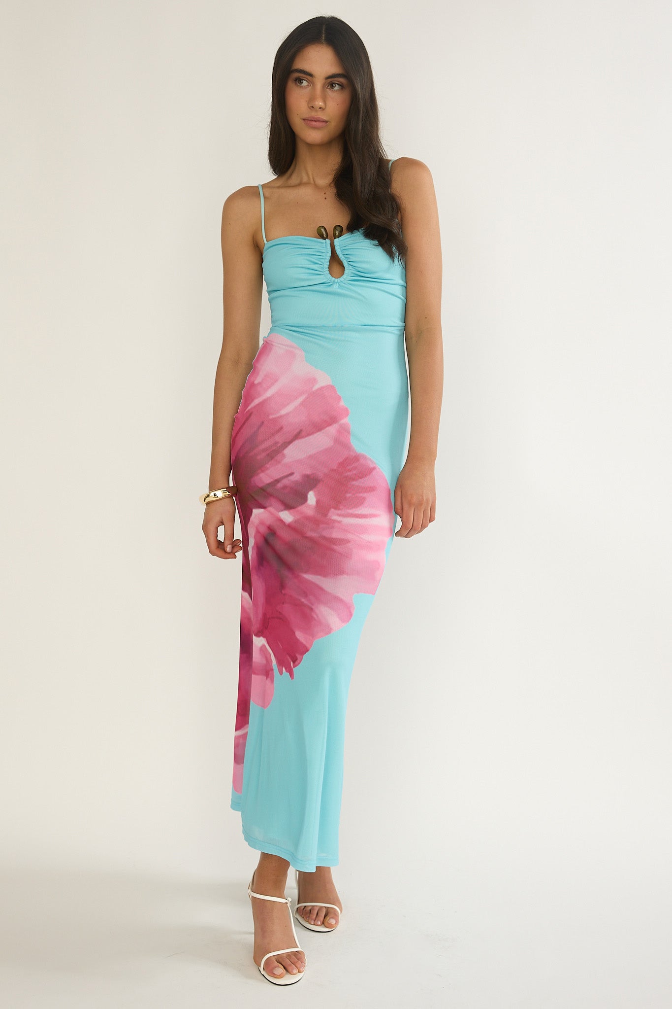 Orabella Waterdrop Wire Bust Maxi Dress Floral Aqua