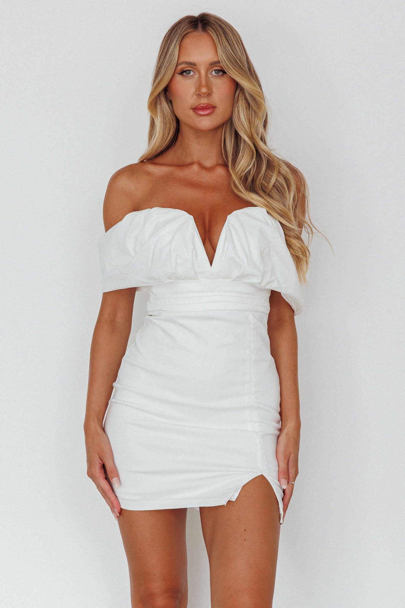 Make your grand entrance in our chic Oui Madame mini dress. Featuring an off-shoulder style and and V-wire in the neckline. It's perfect for your bridal shower or graduation. Team it with white heels and a clutch for an unforgettable look.