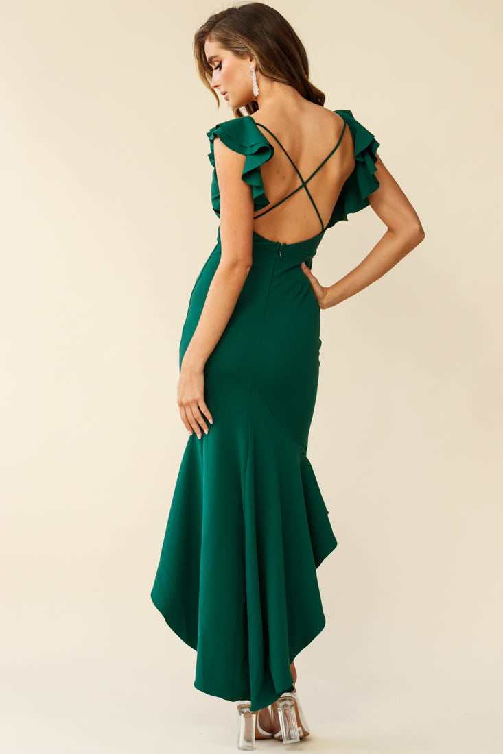 Pearl Ruffle Strap High-Low Hem Dress Forest Green