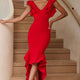 Girl, did it hurt when you fell from Heaven? Cause you look like an angel in our Pearl dress! Featuring on-trend ruffle sleeves, high-low flounce hemline, thin straps that cross over a sexy open back and soft fabric with just the right amount of stretch to hug your curves. Team it with gold hoop earrings and winged-eyeliner for an ethereal look we are loving.