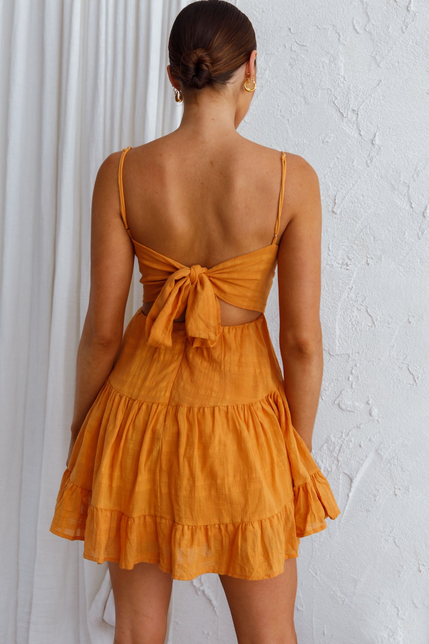 You'll be the center of attention in our super cute Phaedra dress. Featuring adjustable cami straps and a tie in the back. Perfect for a mimosa brunch with your besties, teamed with nude, strappy heels and a tote.