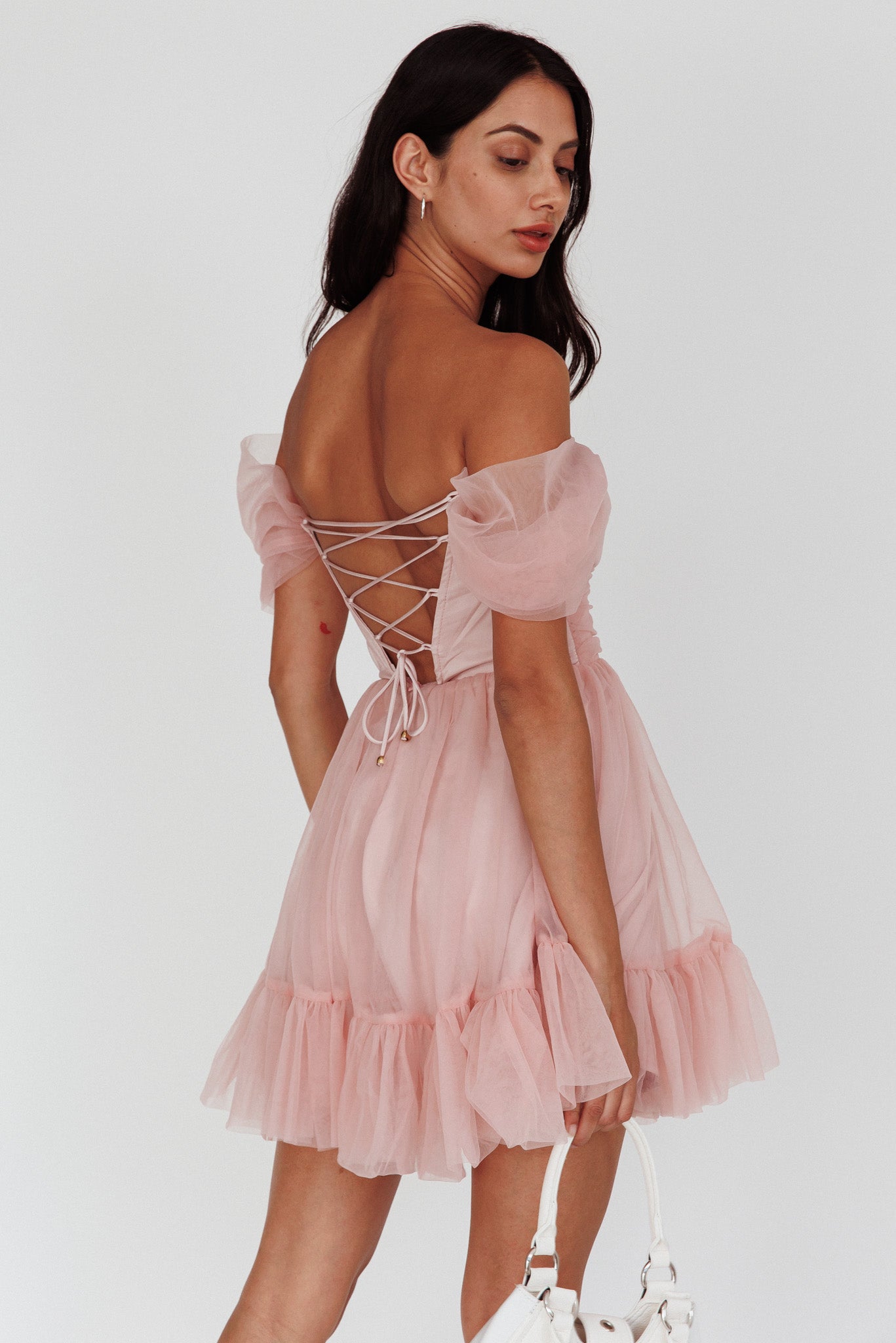Pixi Off-Shoulder Lace-Up Back Back Dress Pink