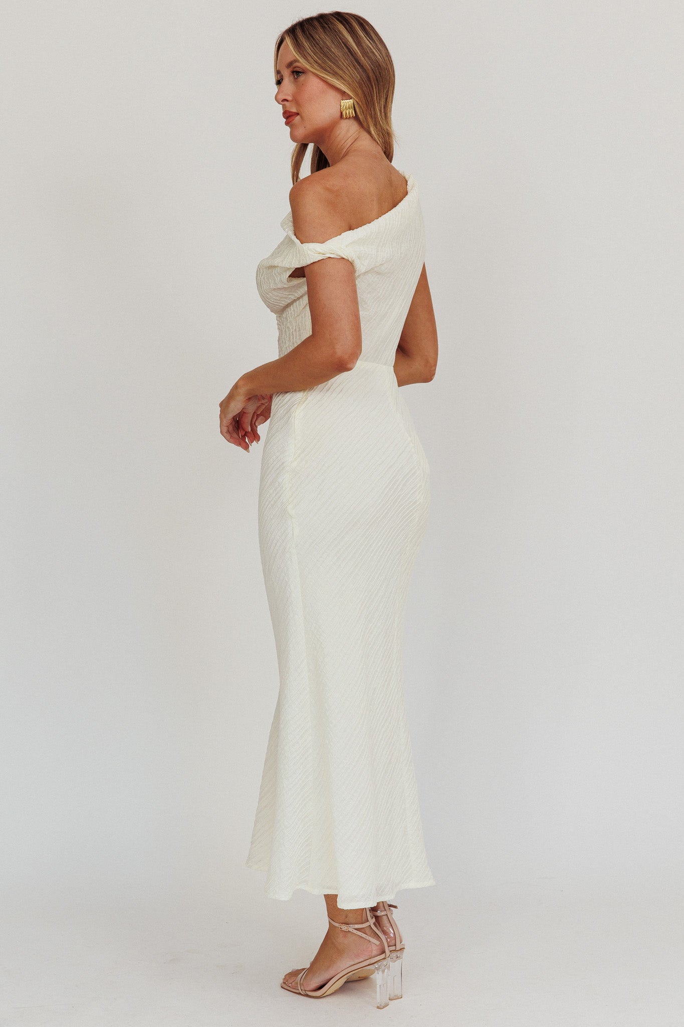 Designed for the stylish, our Play Date midi dress is bound to leave an unforgettable impression. Featuring a luxe textured fabric and asymmetric off shoulder neckline, it's the perfect balance of classy and style! Wear it to formal functions or special events! Highlight your personal style by pairing this dress with your signature jewelry pieces.